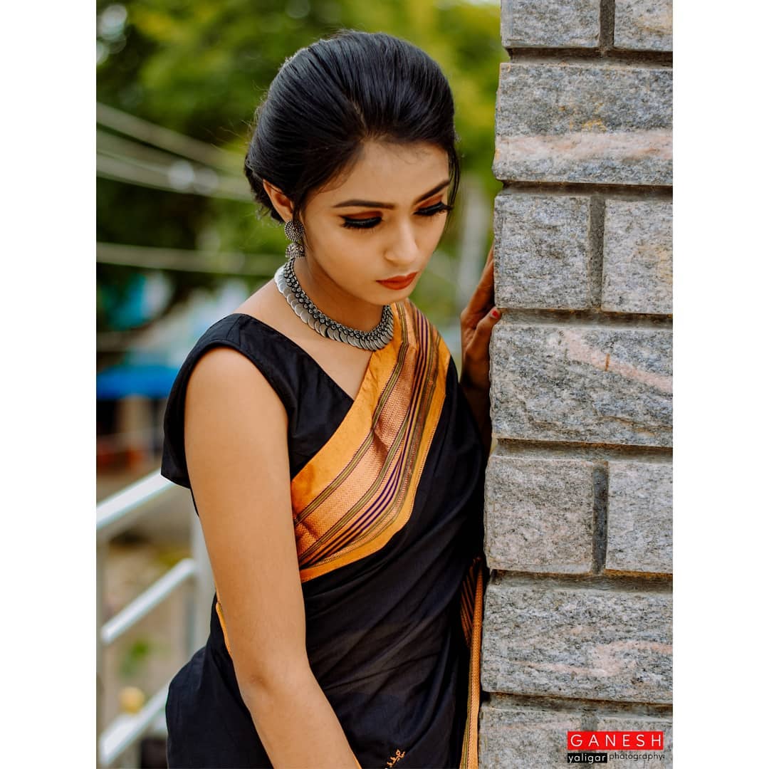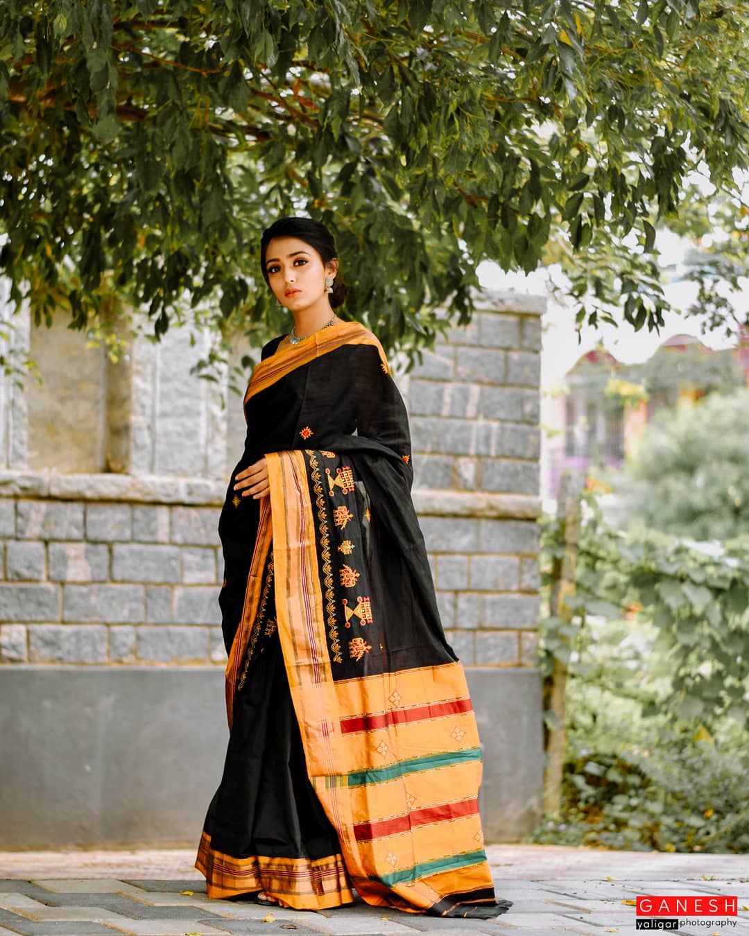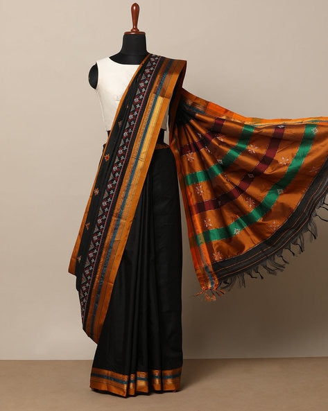 Ilkal Cotton Silk Blend Kasuti Handwoven Traditional Border Stripe Pallu Saree - Black