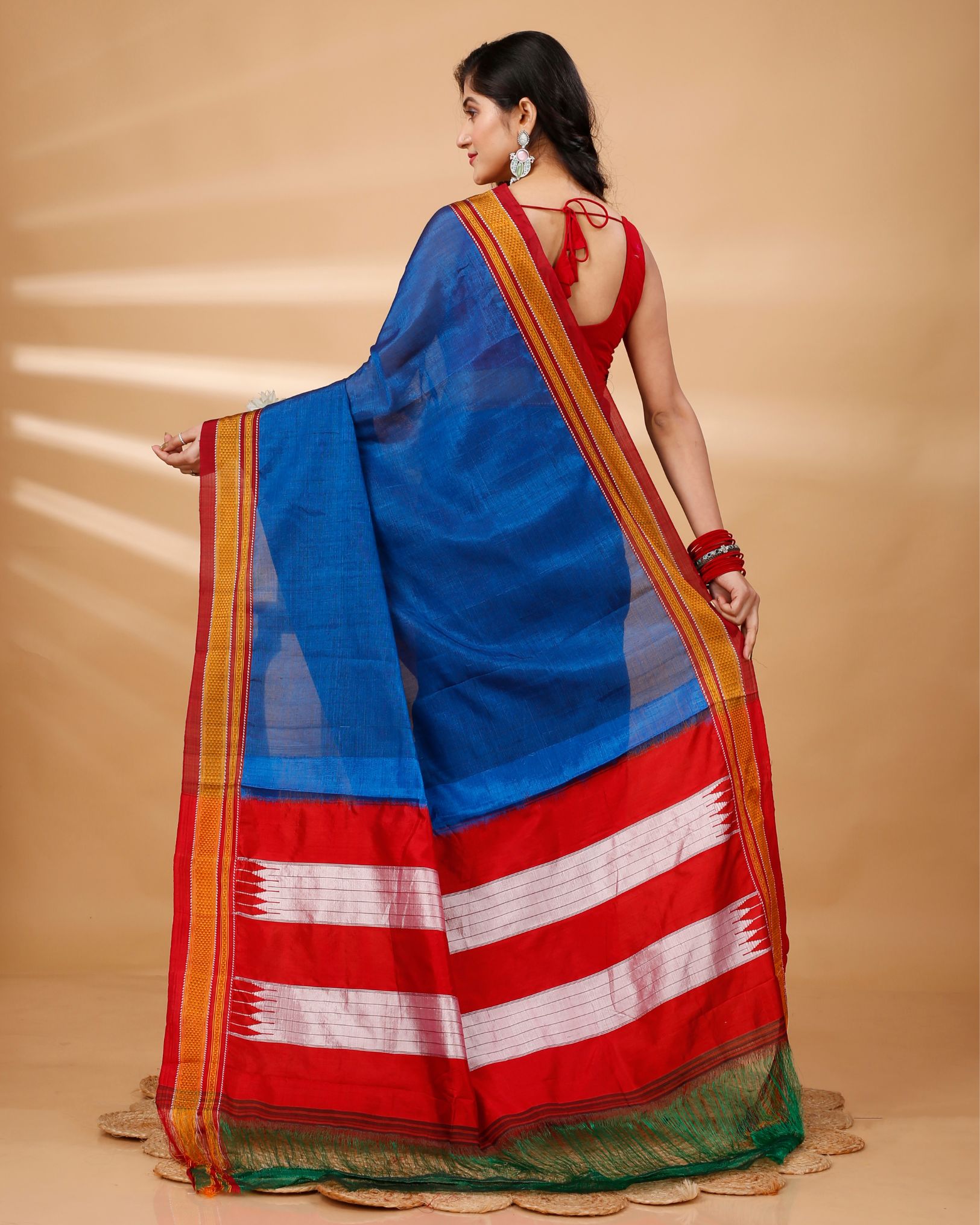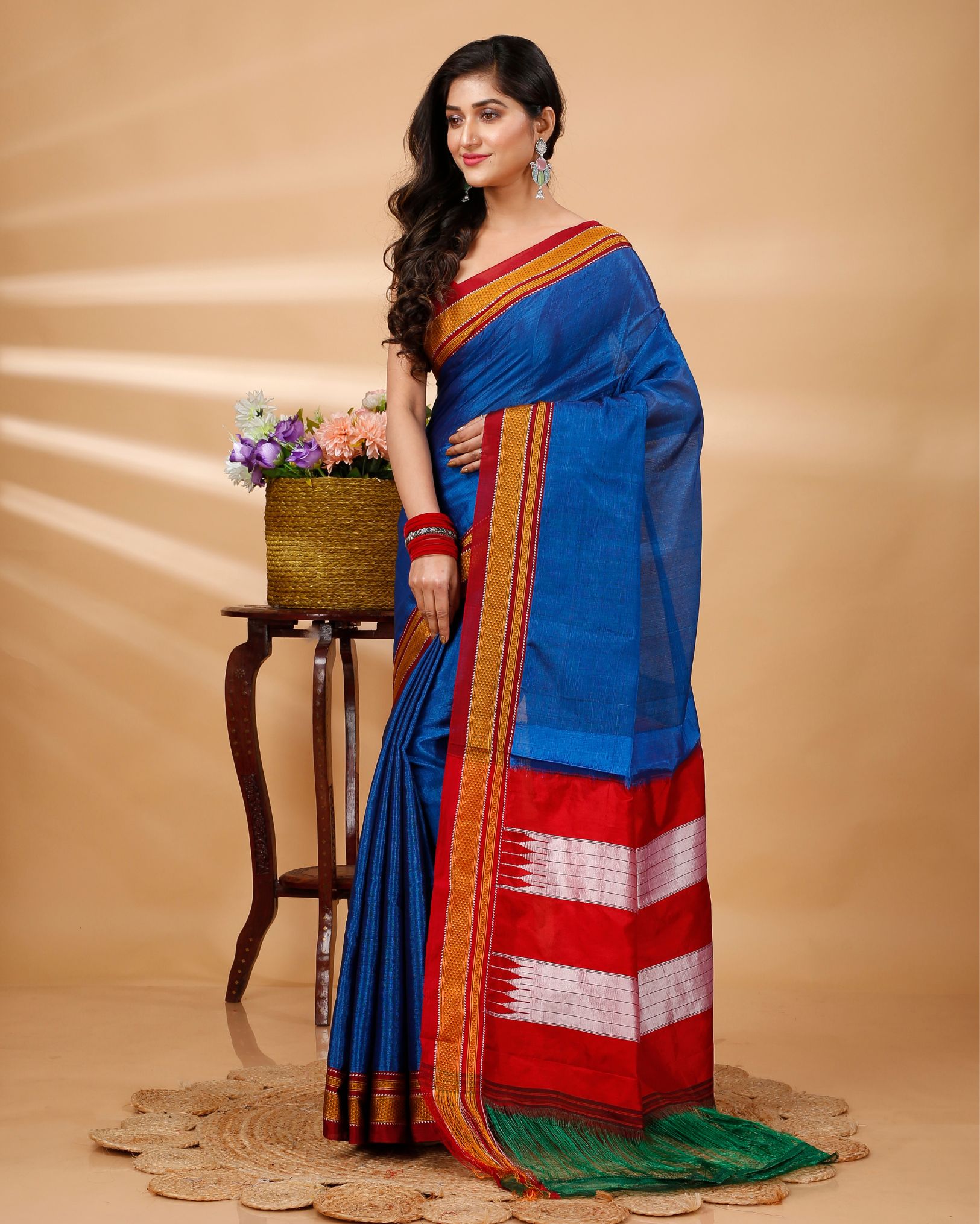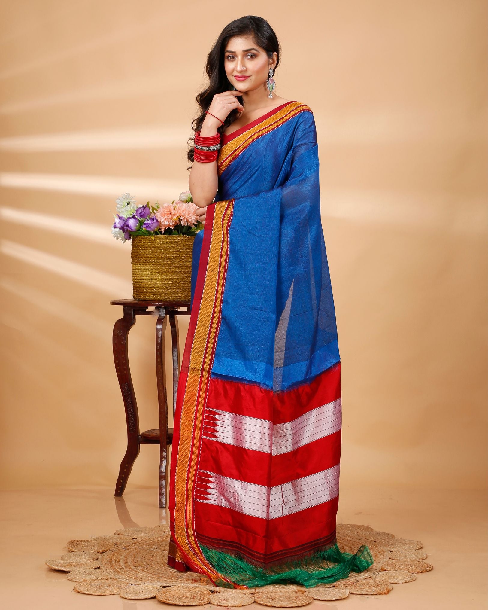 Ilkal Handwoven Rayon Blend with Cotton Tope Pallu Saree - Blue