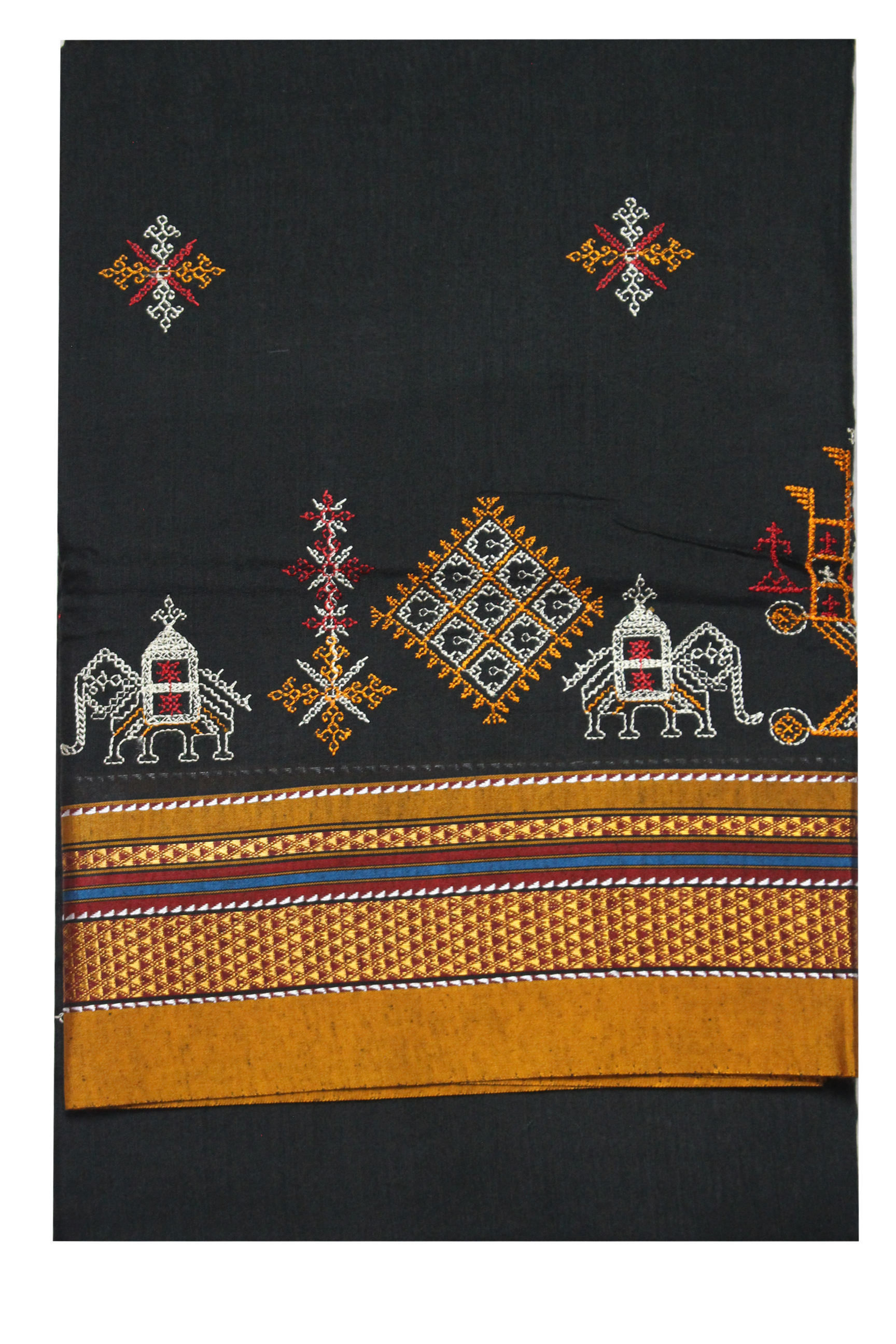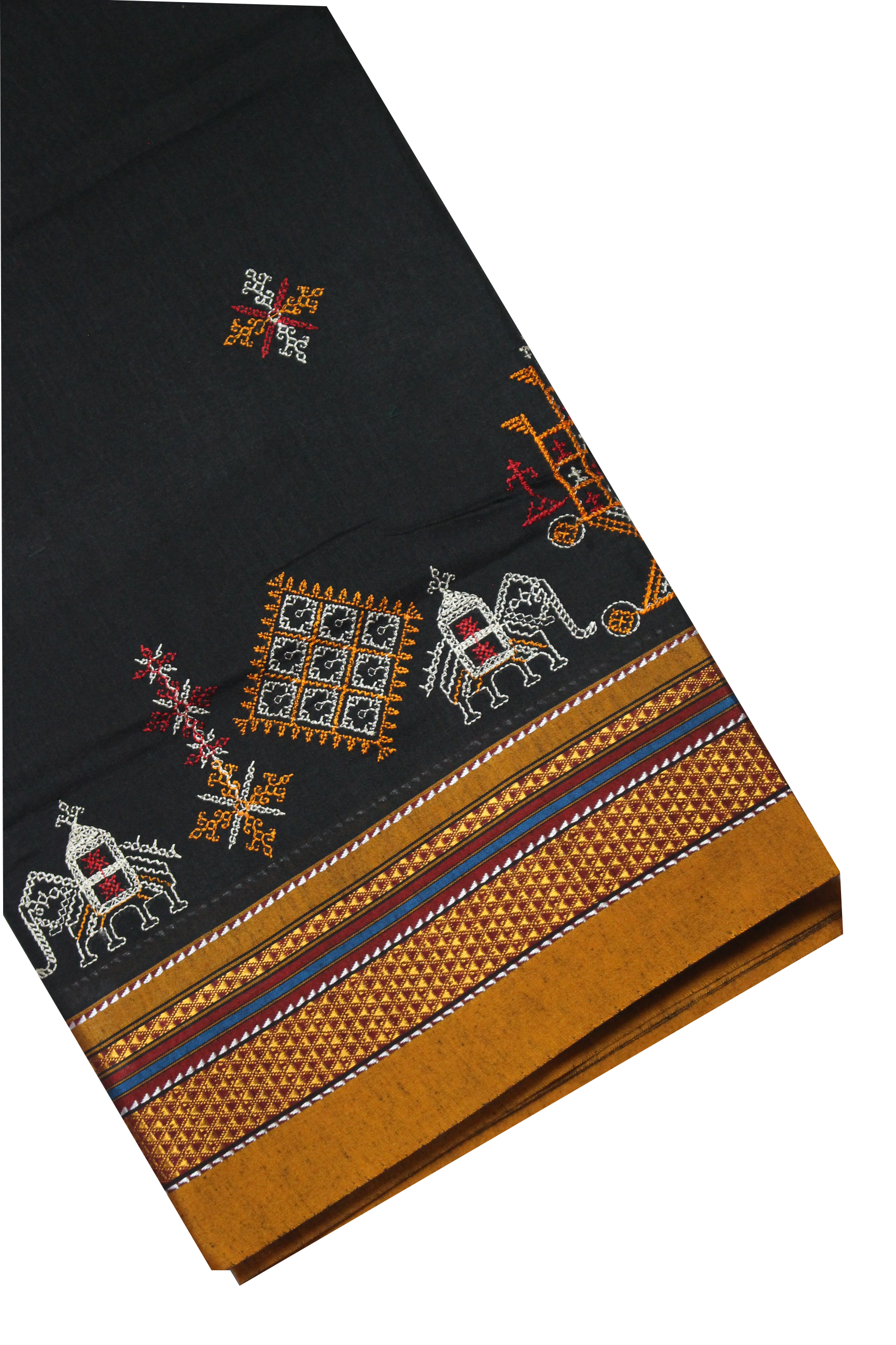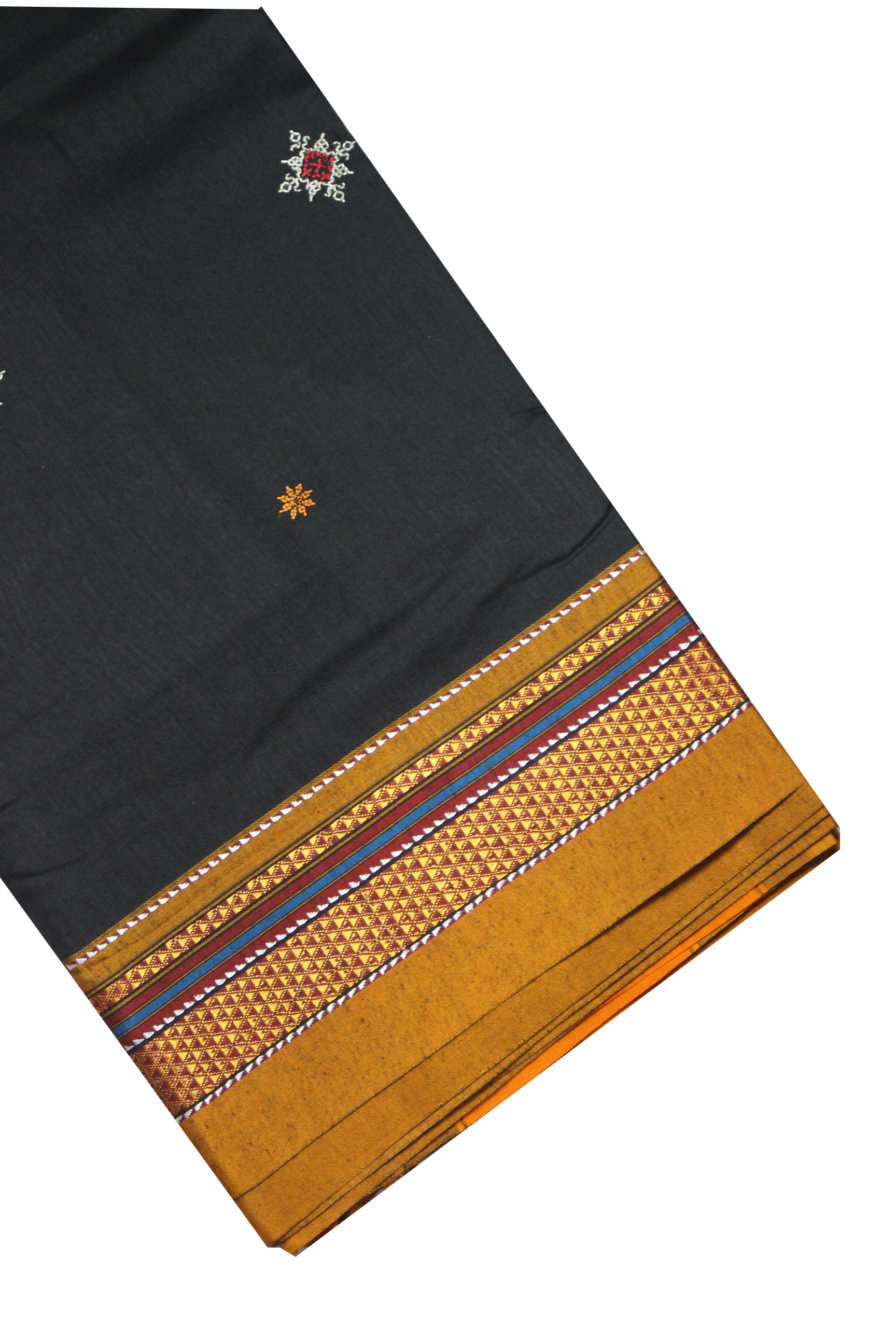 Neyge Ilkal Handwoven Cotton Silk Blend Kasuti Chikki Paras Traditional Border Stripe Pallu - Black