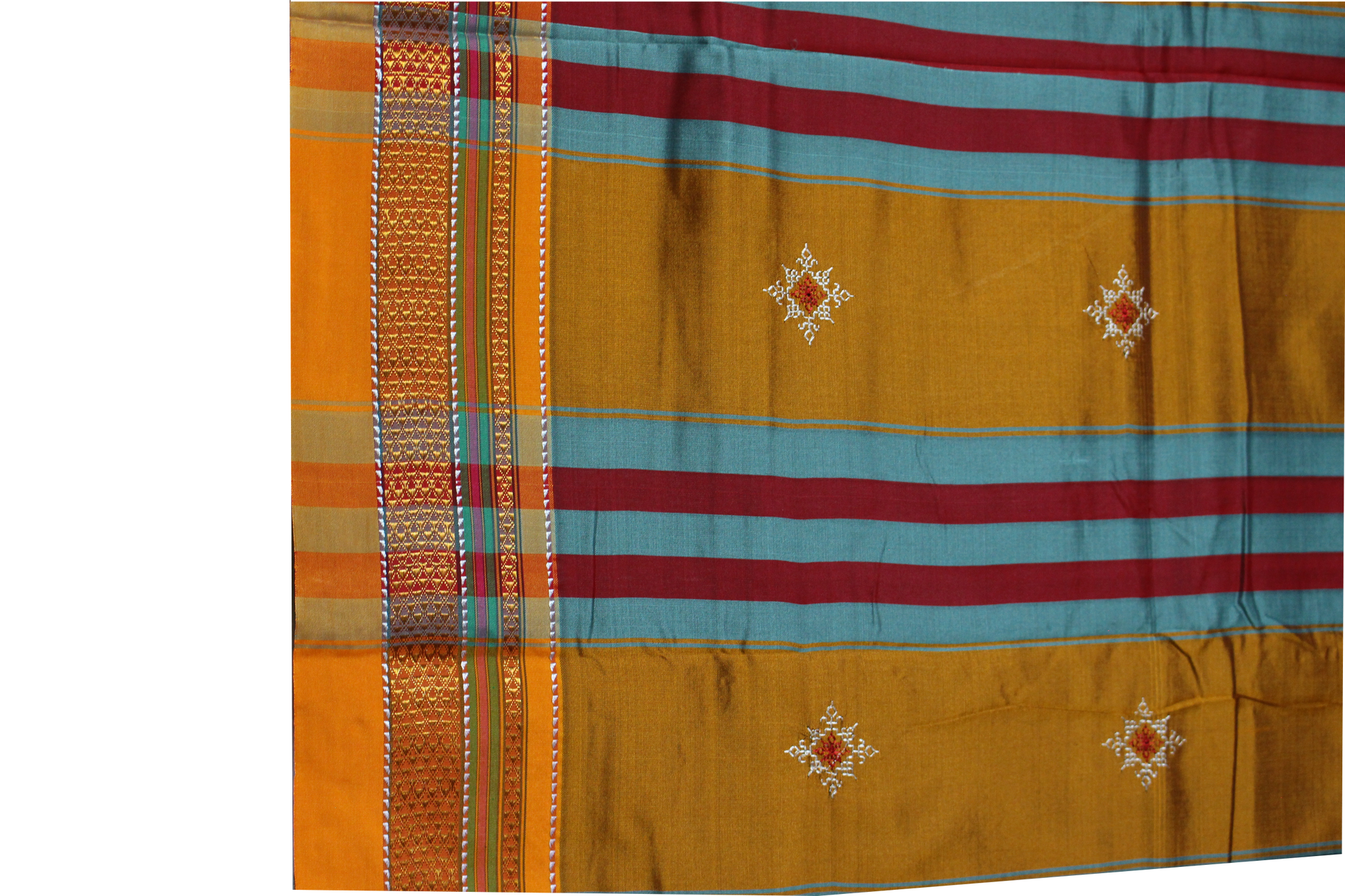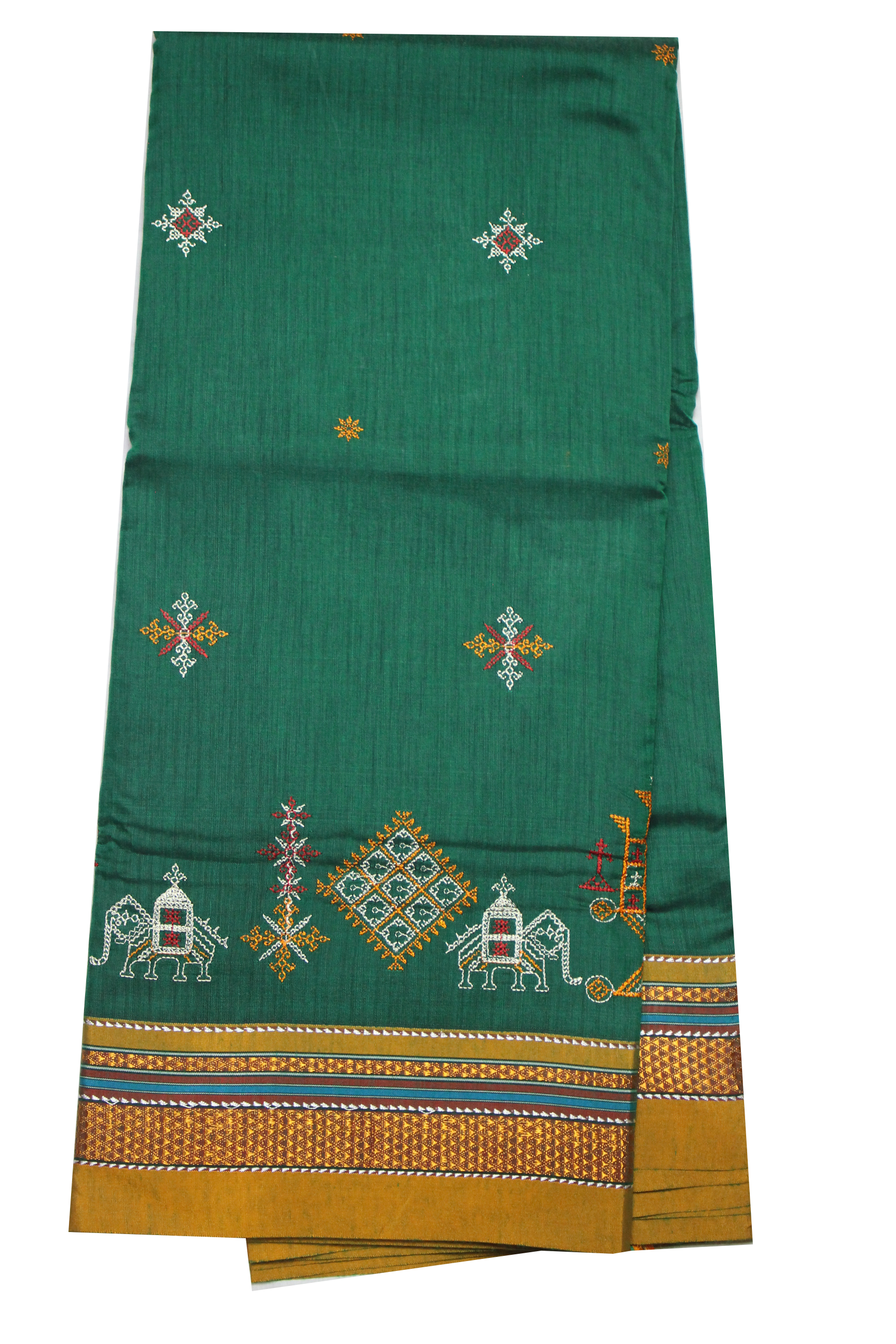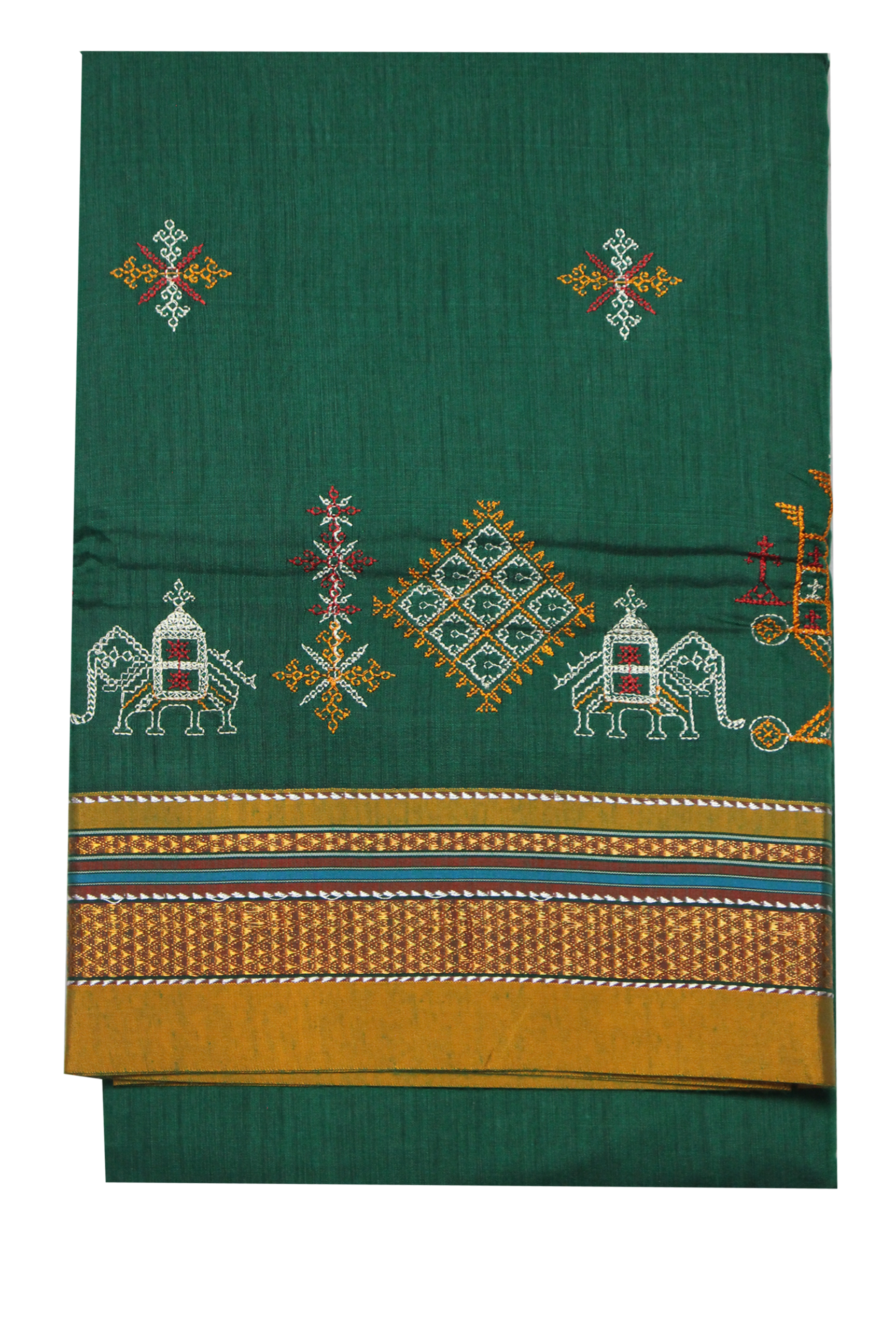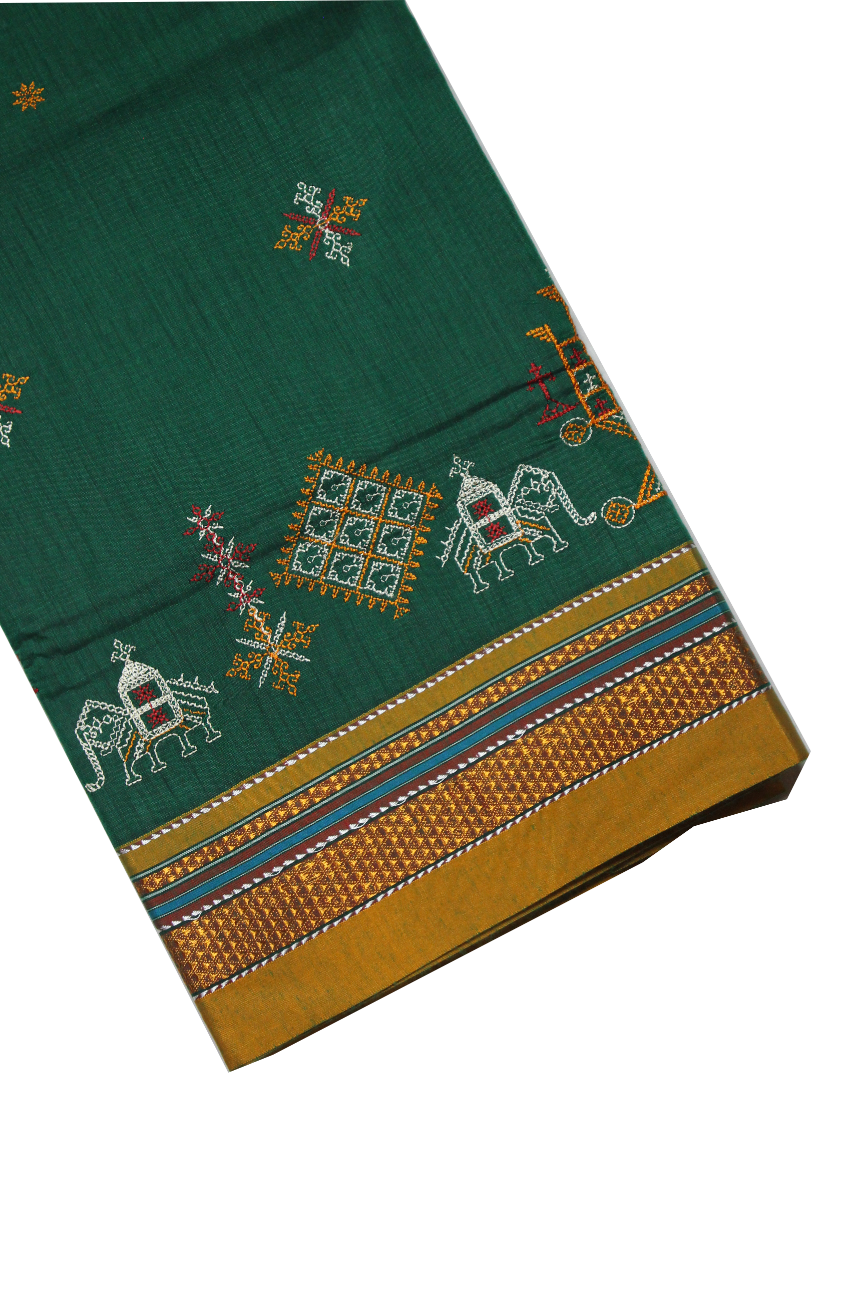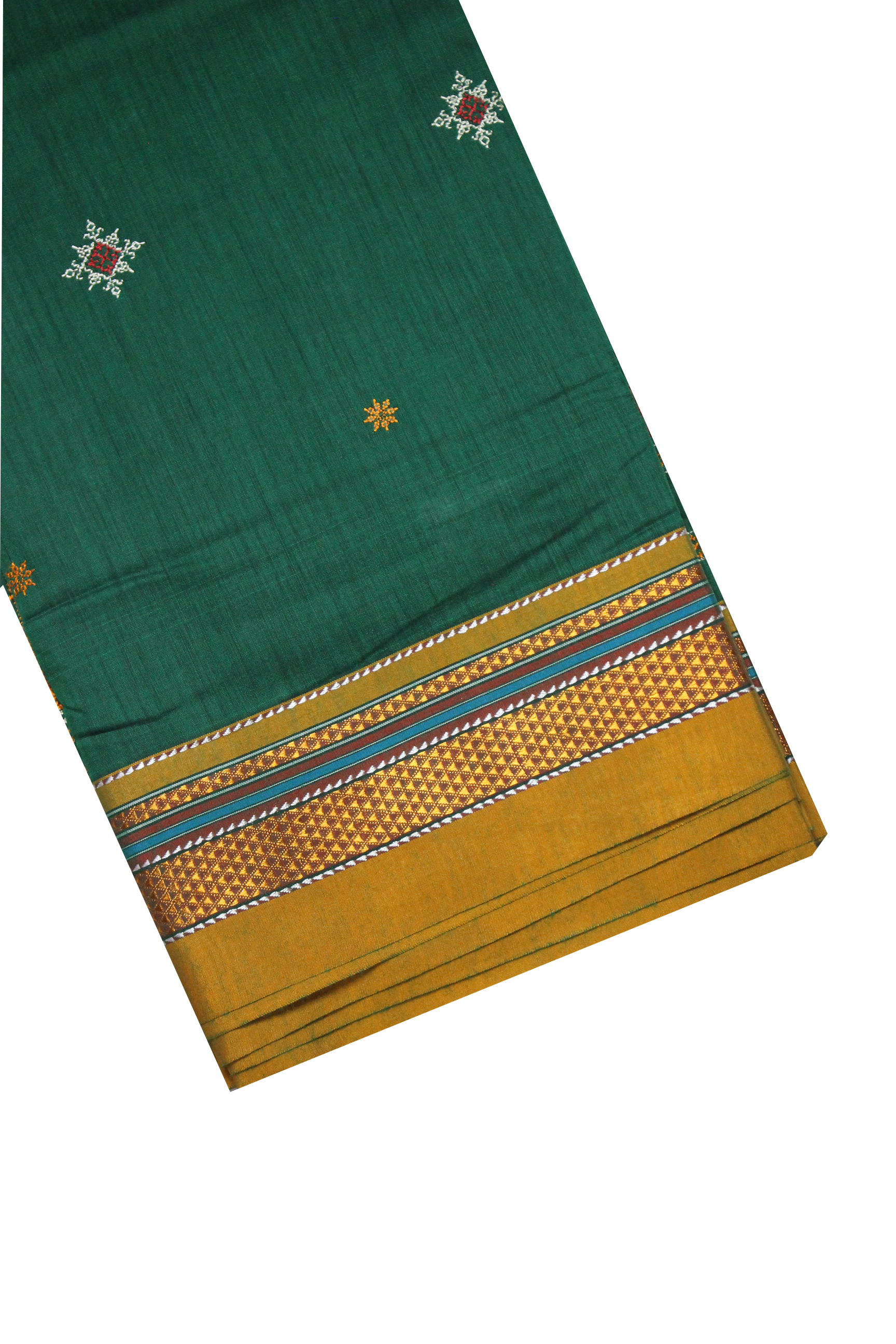 Neyge Ilkal Handwoven Cotton Silk Blend Kasuti Chikki Paras Traditional Border Stripe Pallu - Green