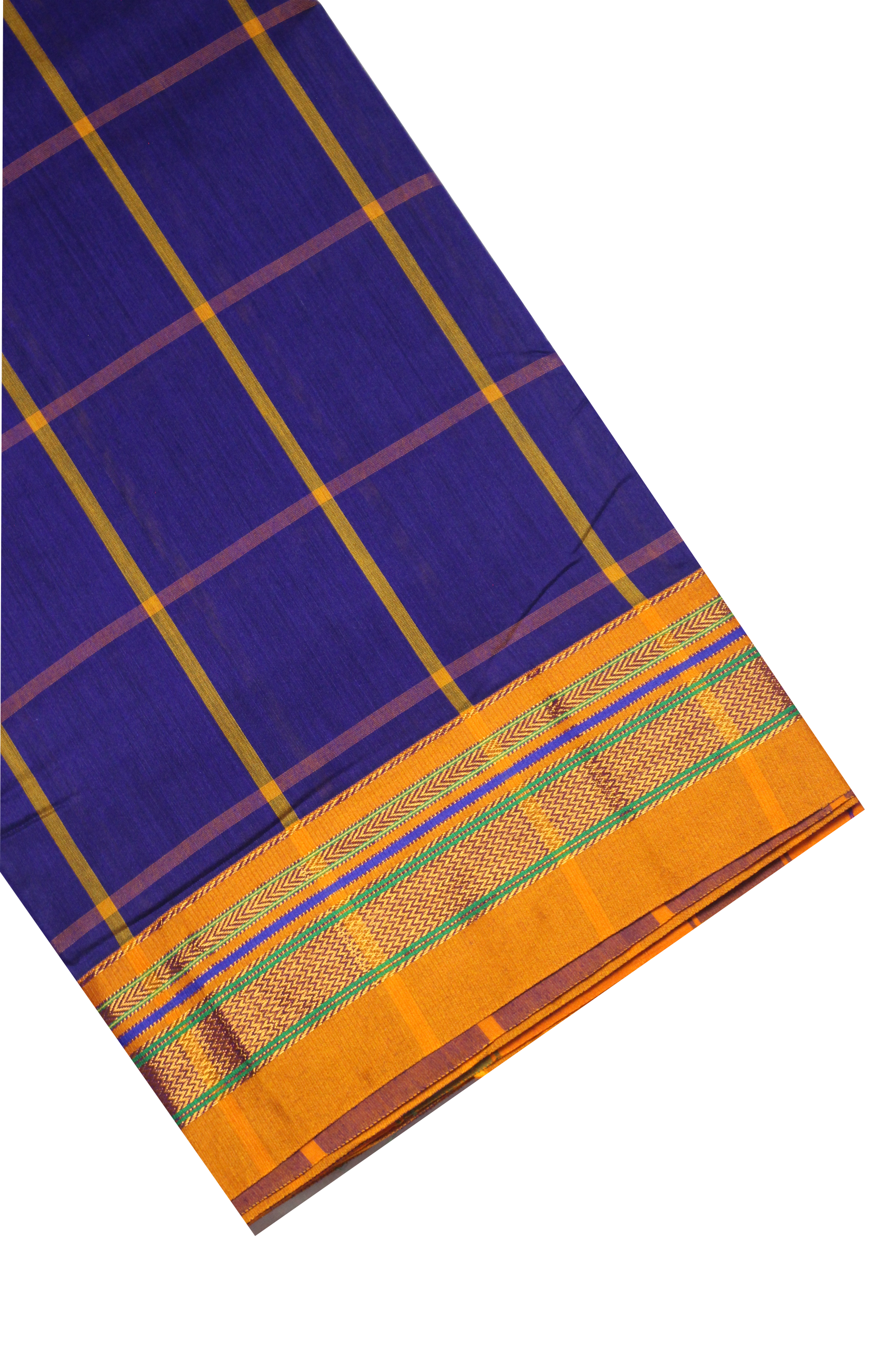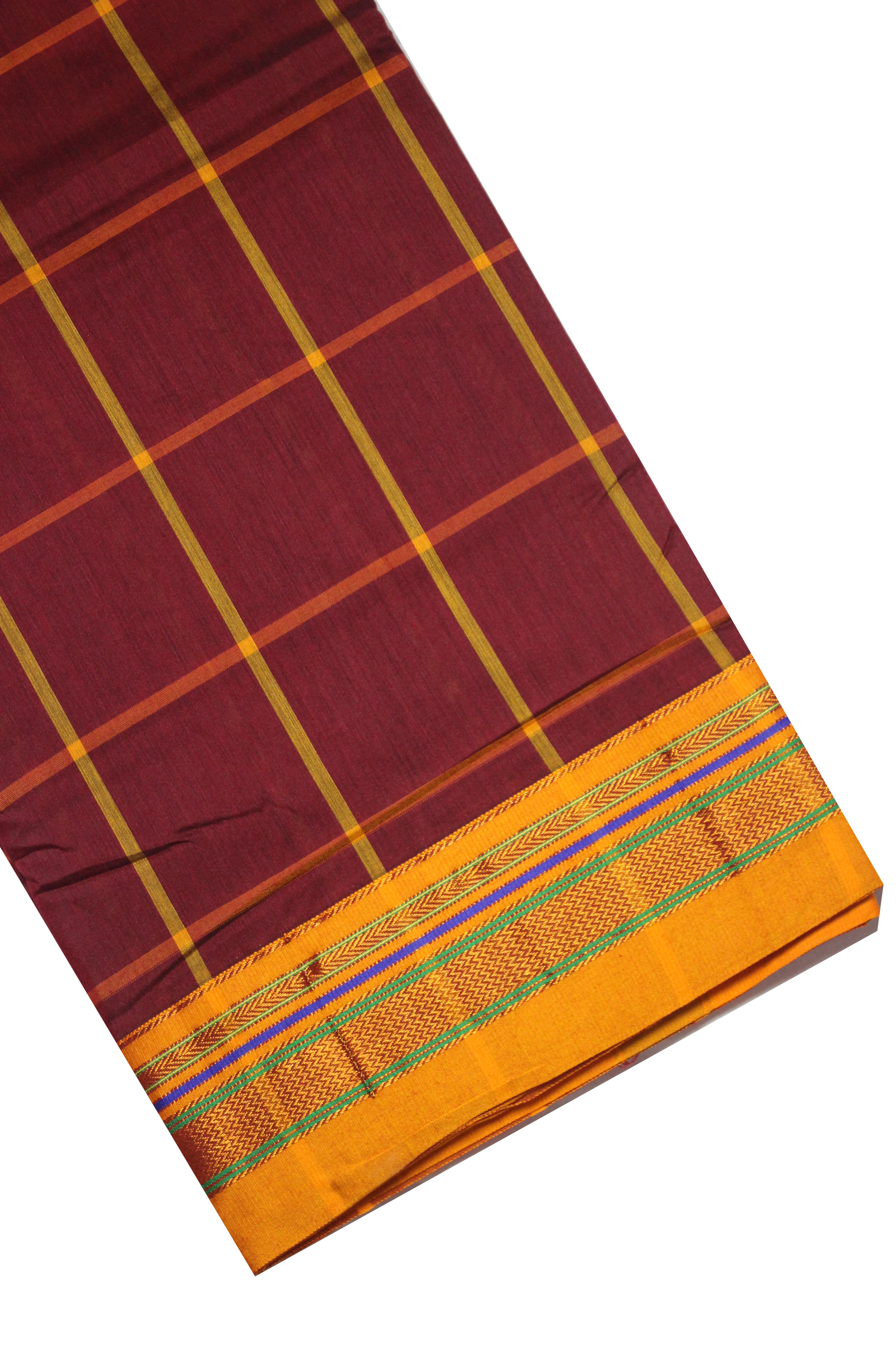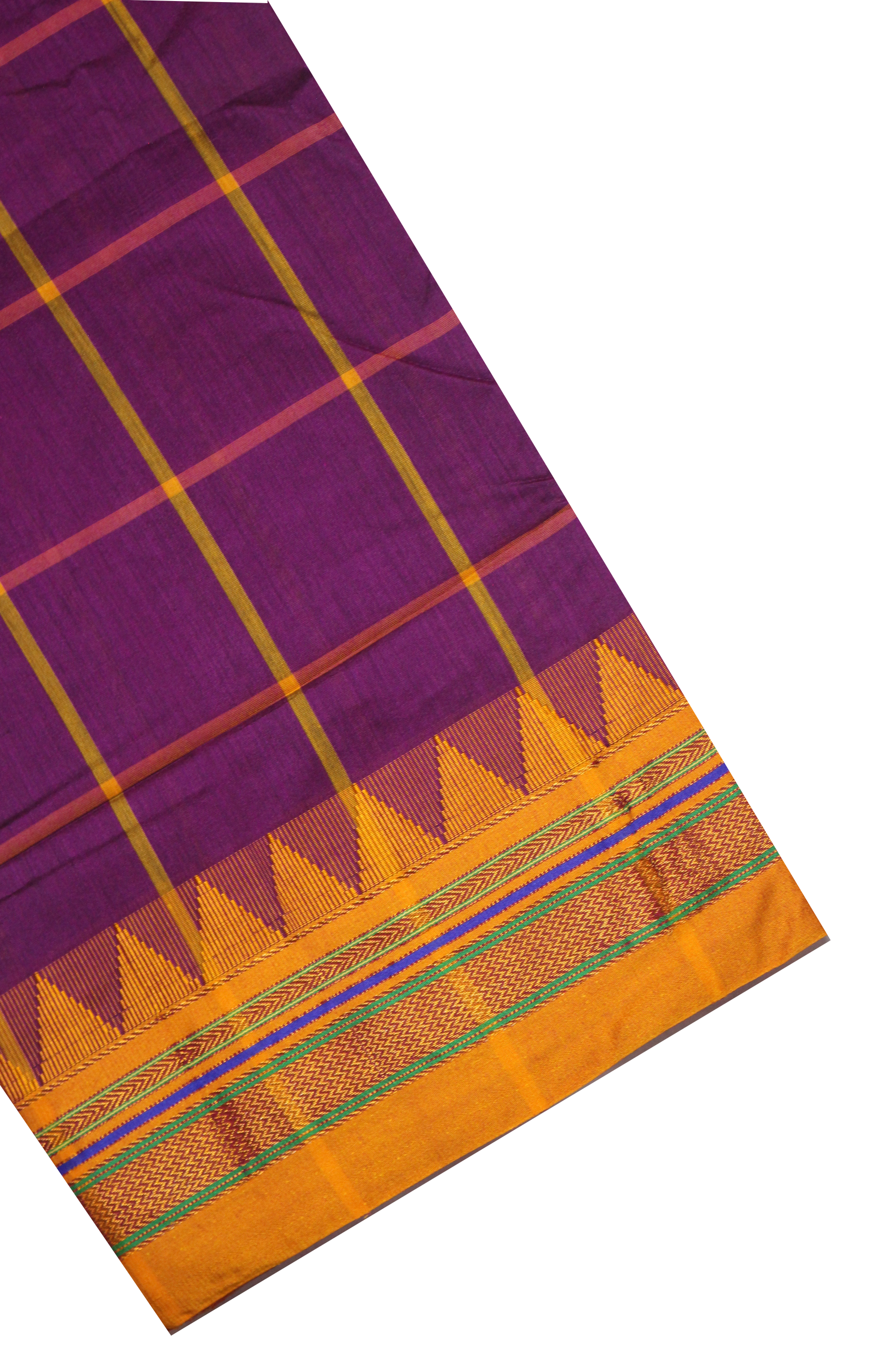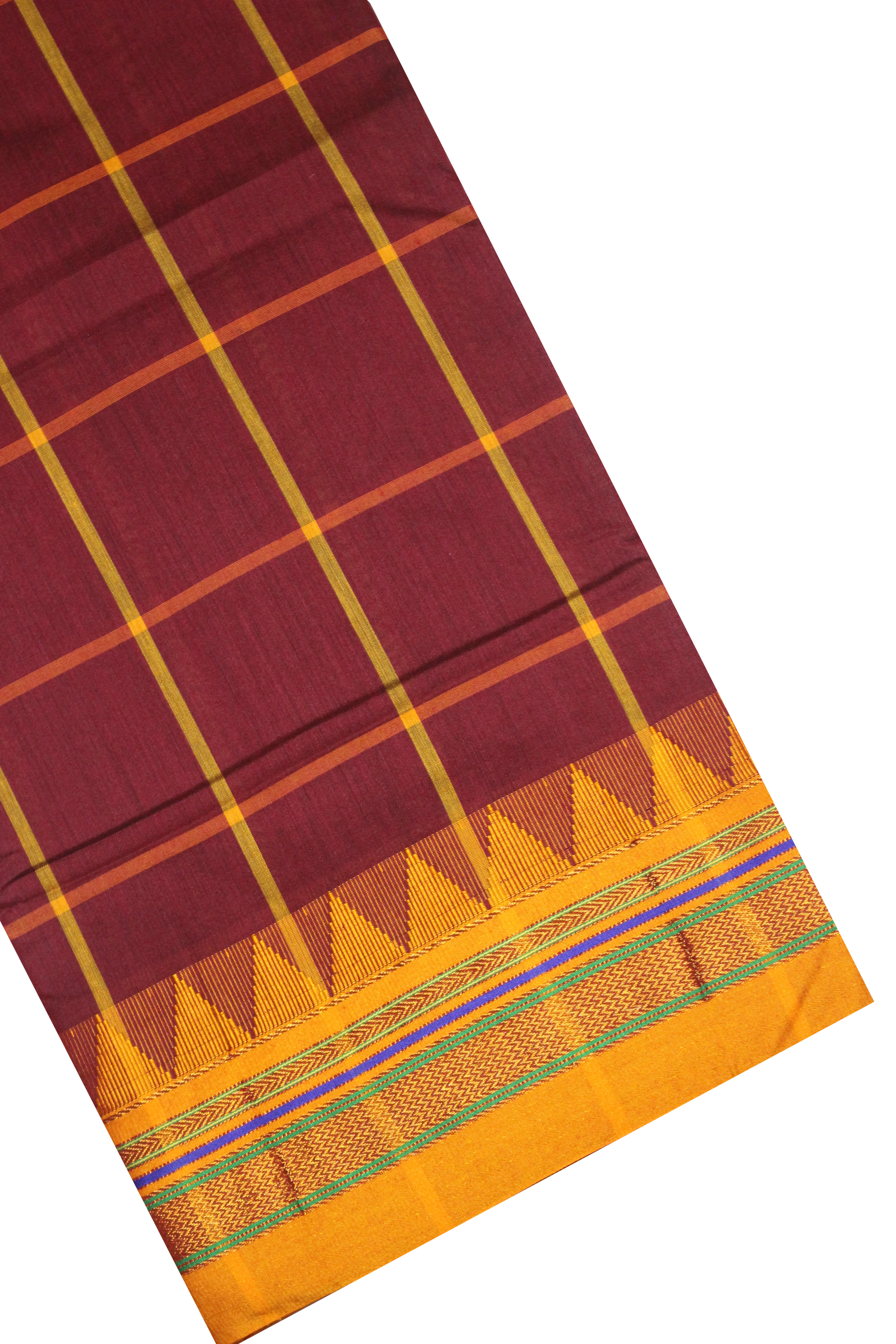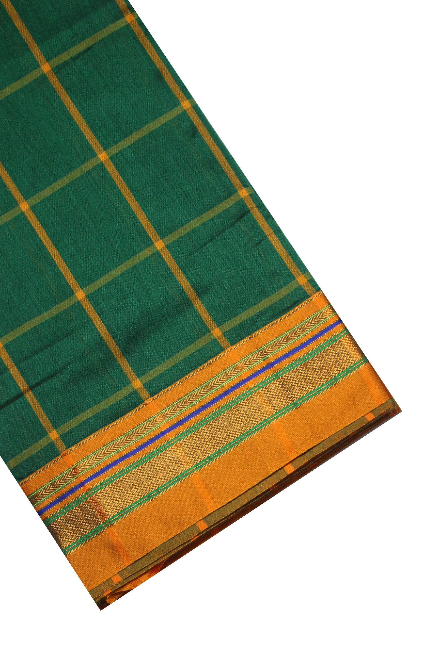 Neyge Ilkal Handwoven Cotton Silk Checkered Patterened Traditional Border Stripe Pallu Saree