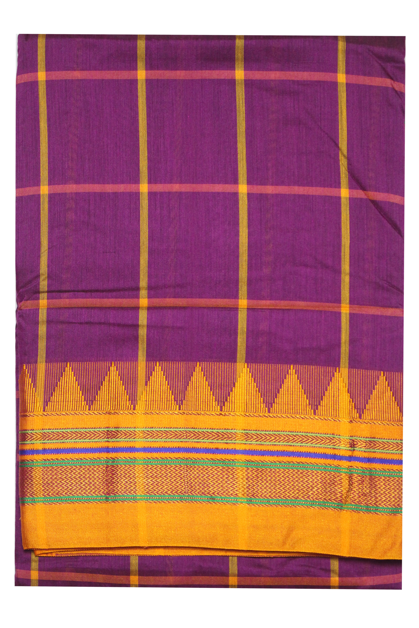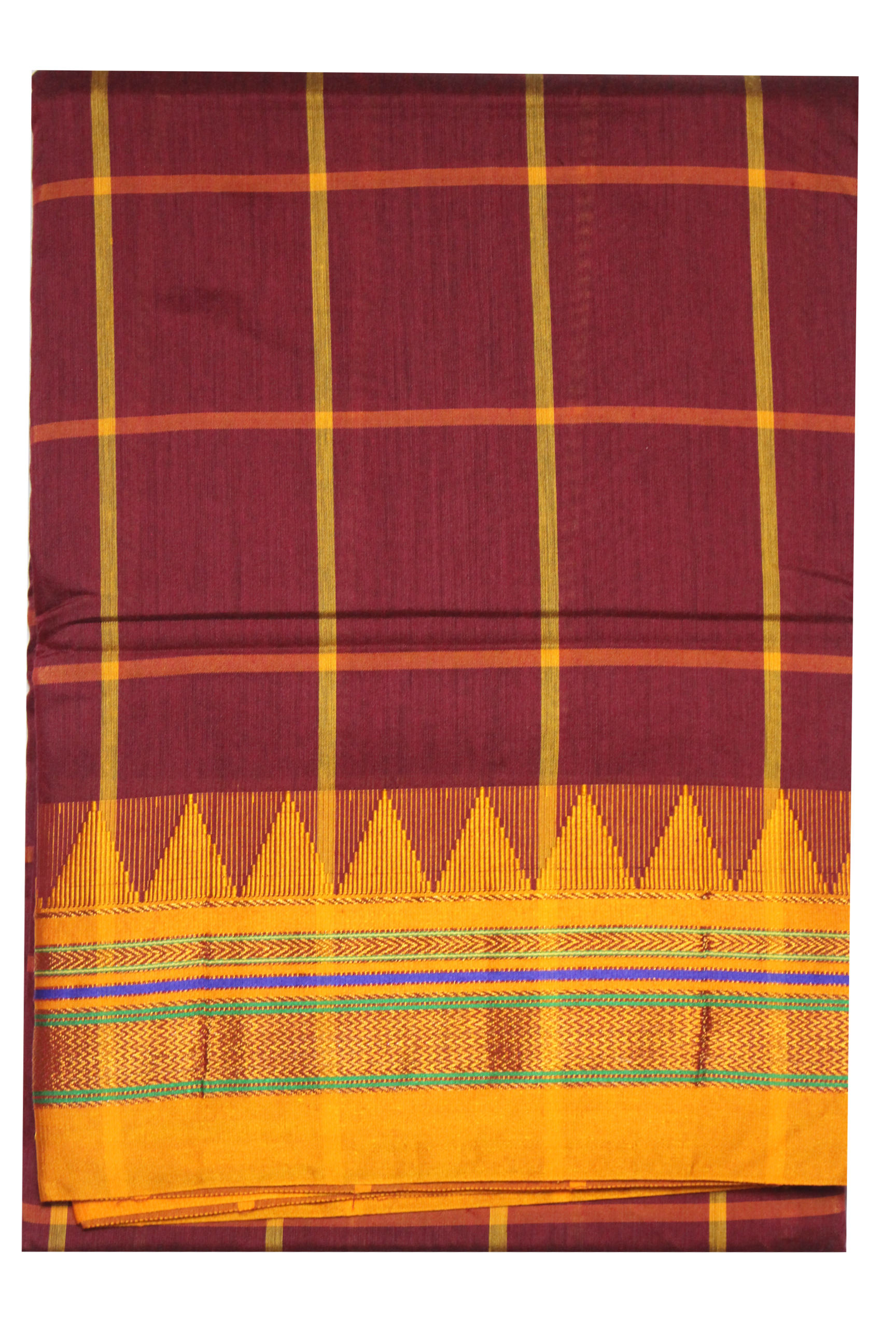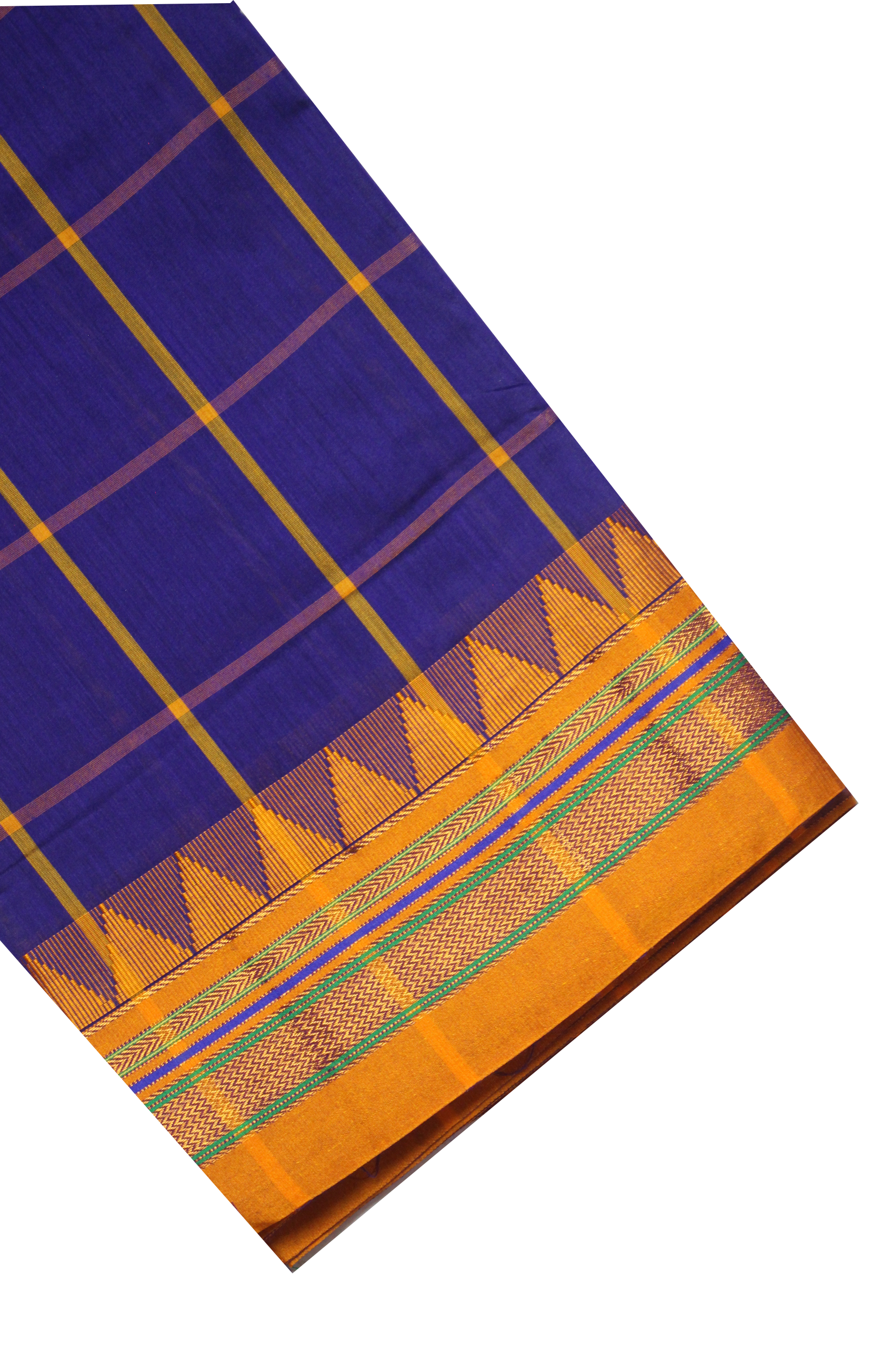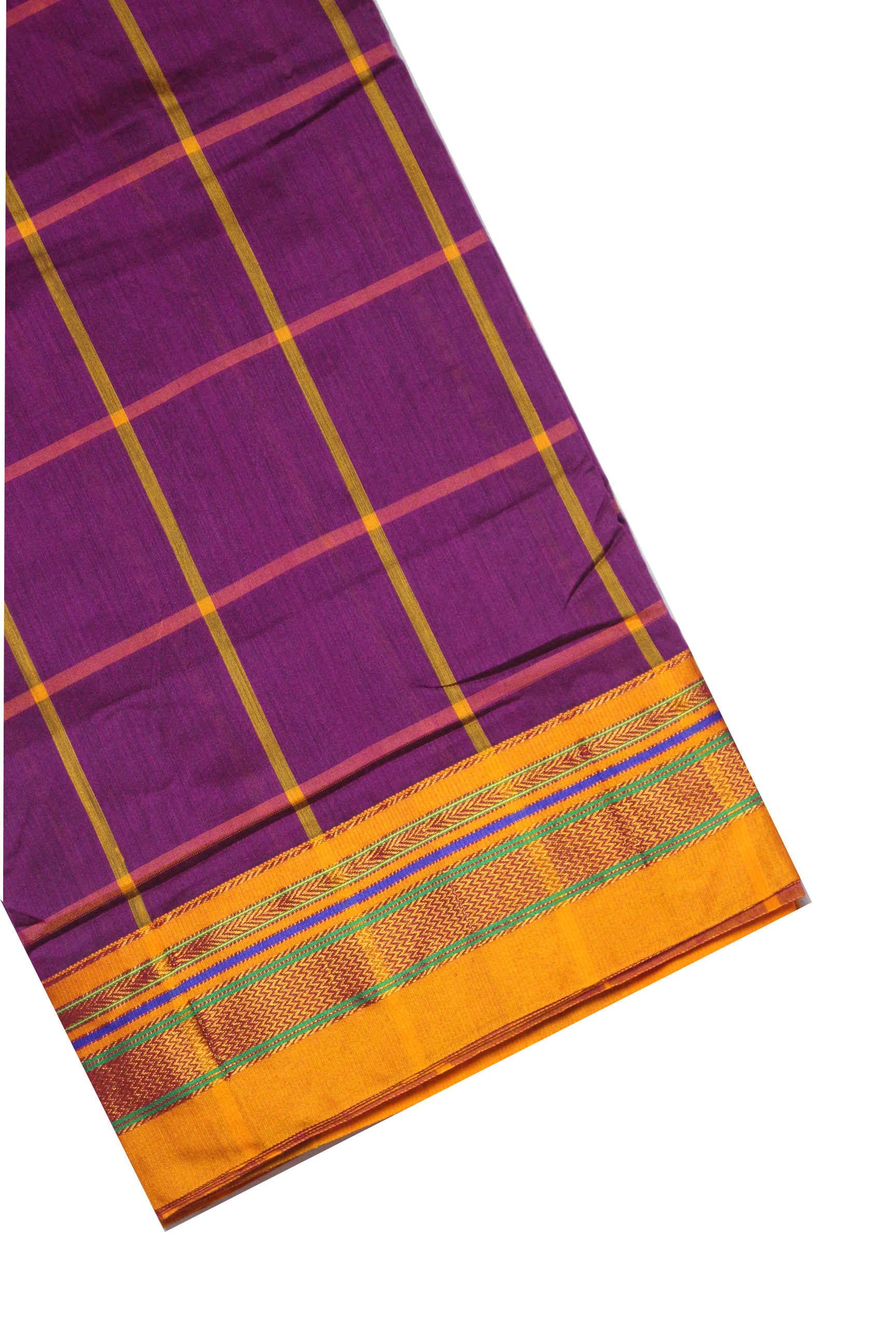 Neyge Ilkal Handwoven Cotton Silk Checkered Patterened Traditional Border Stripe Pallu Saree