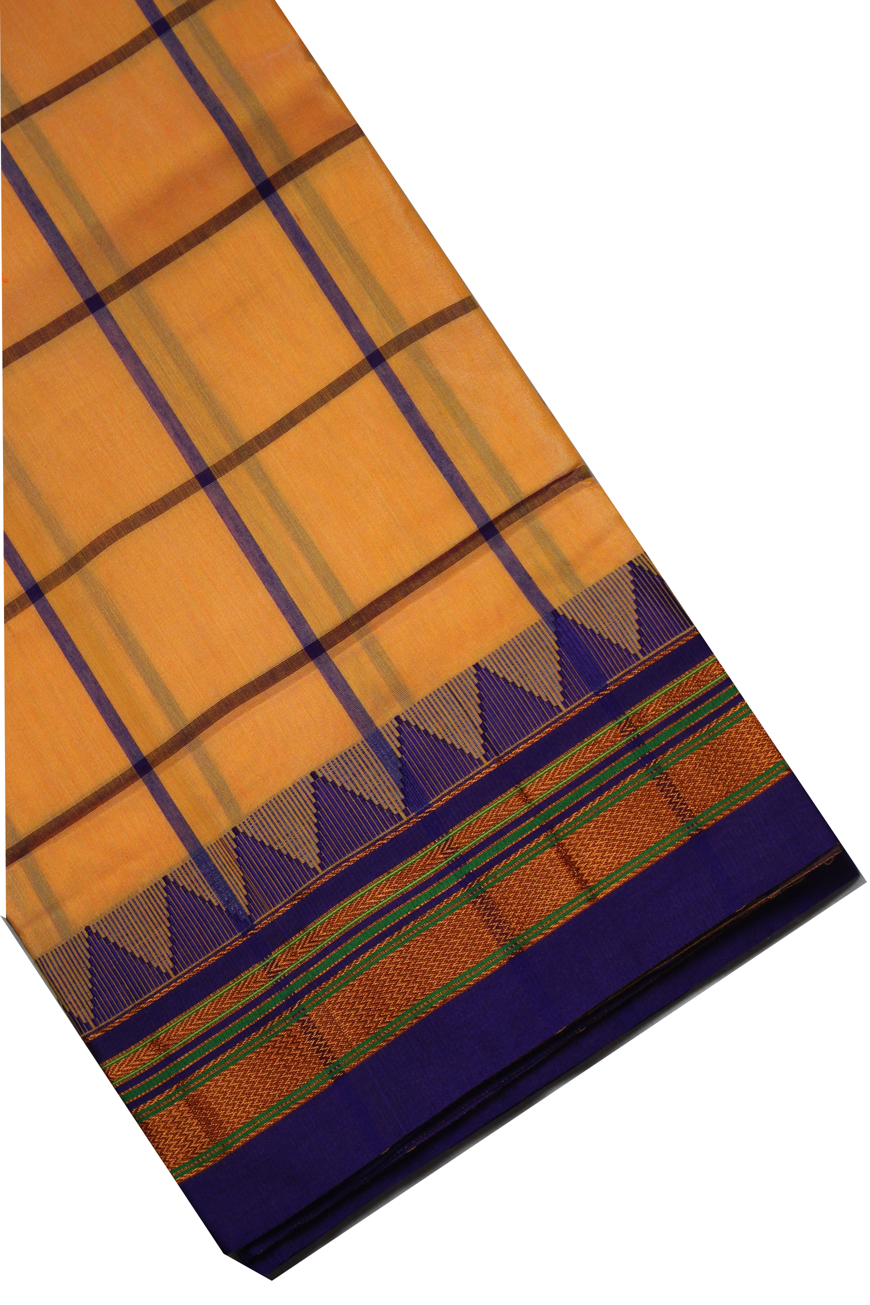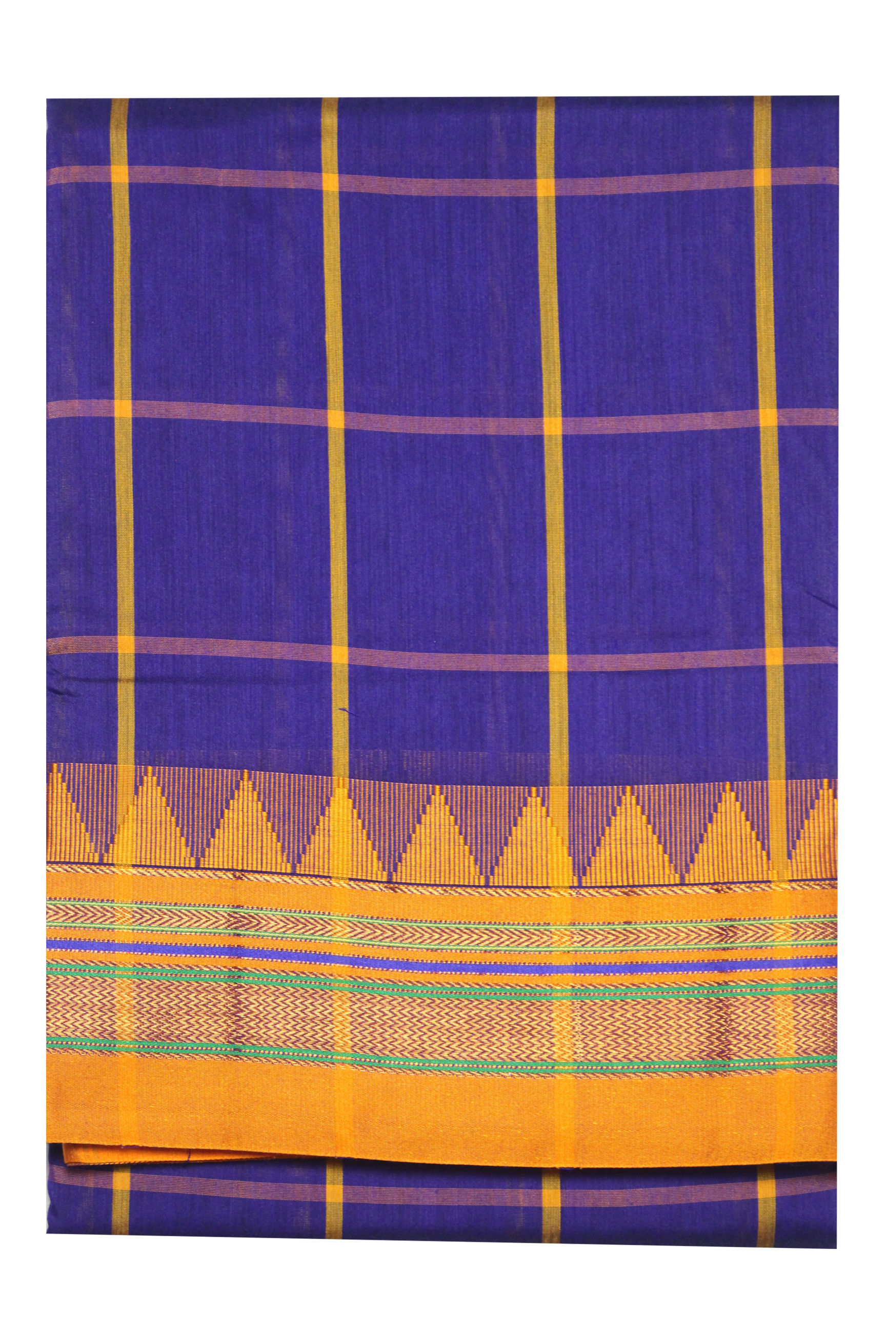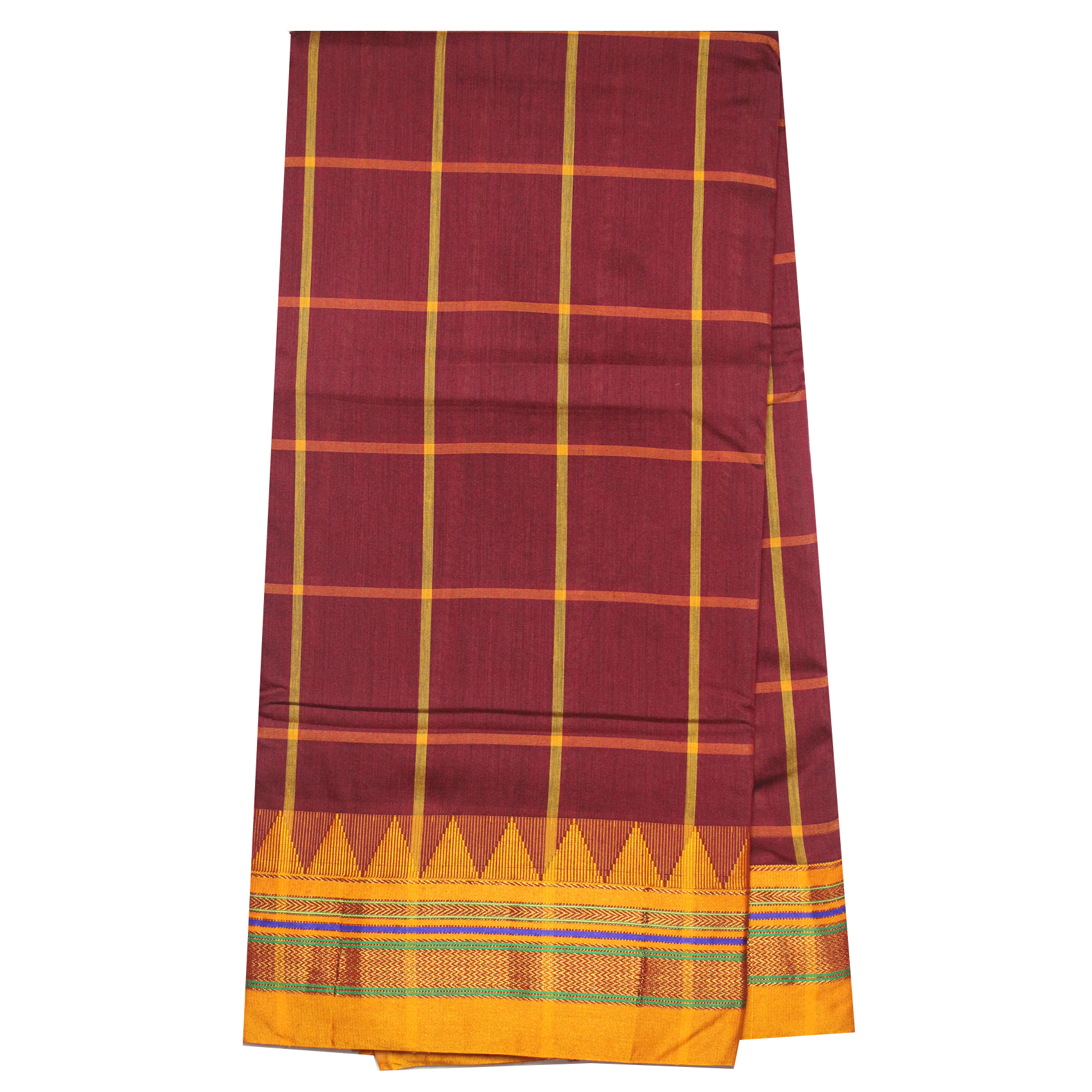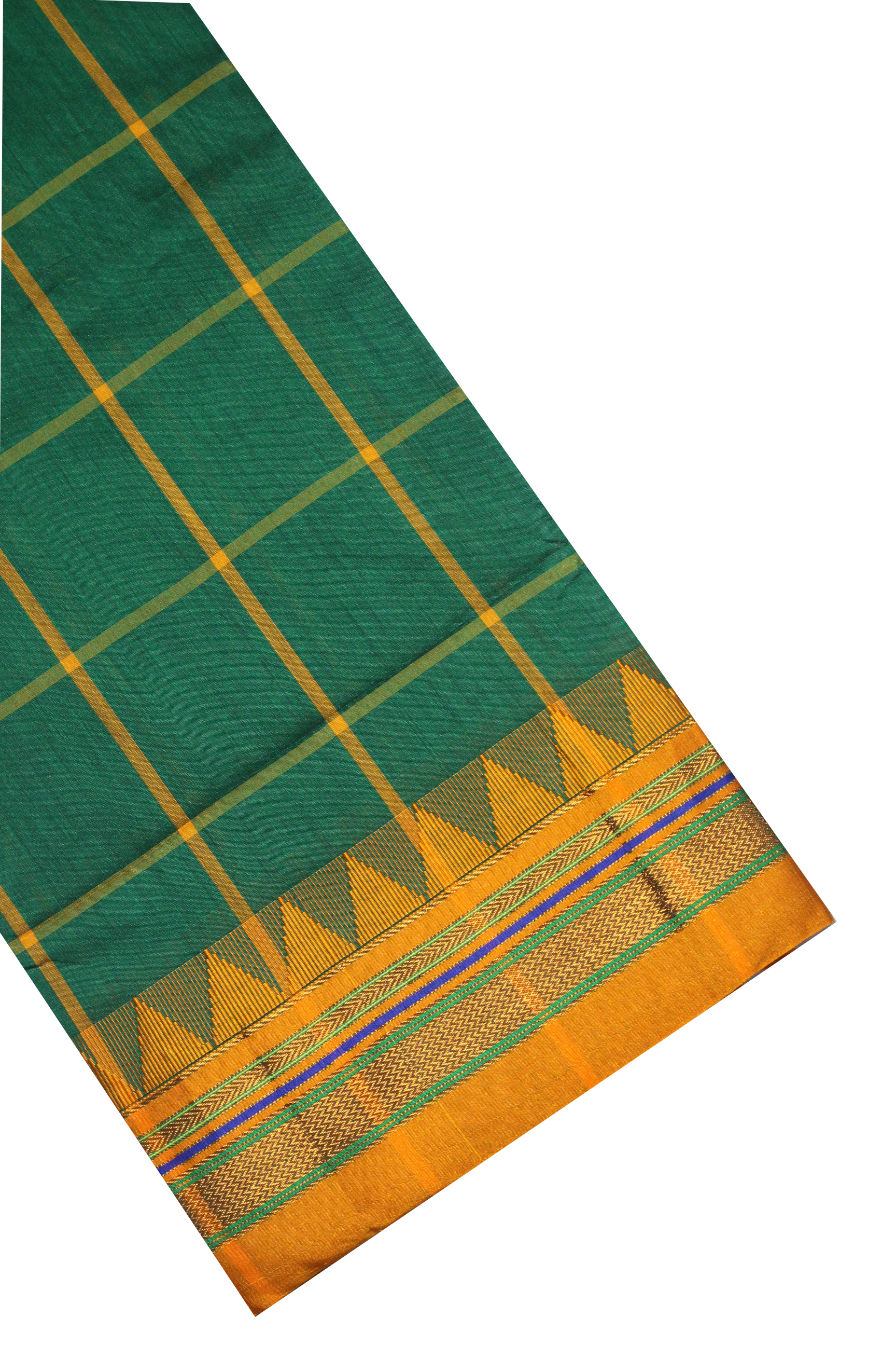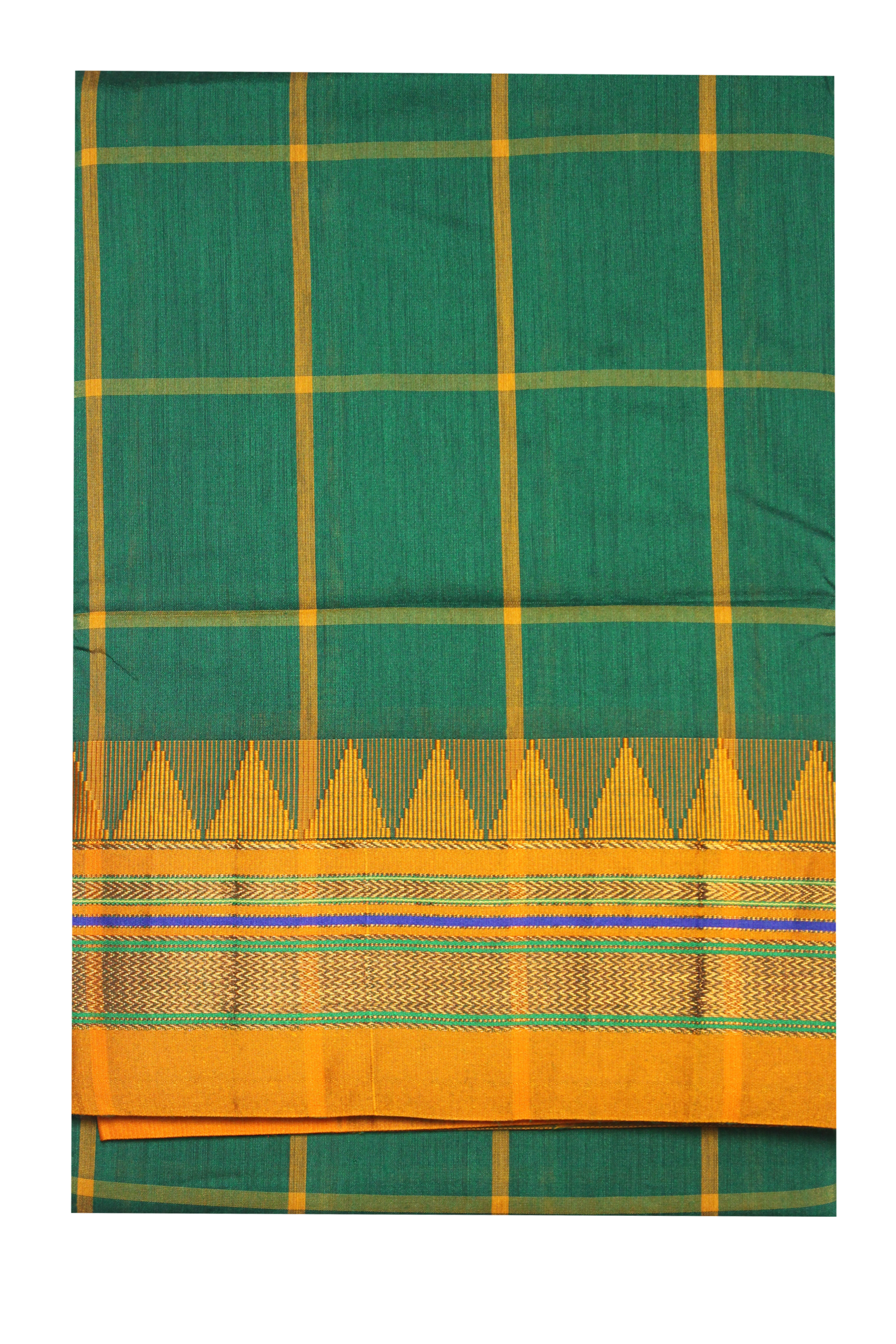 Neyge Ilkal Handwoven Cotton Silk Checkered Patterened Traditional Border Stripe Pallu Saree