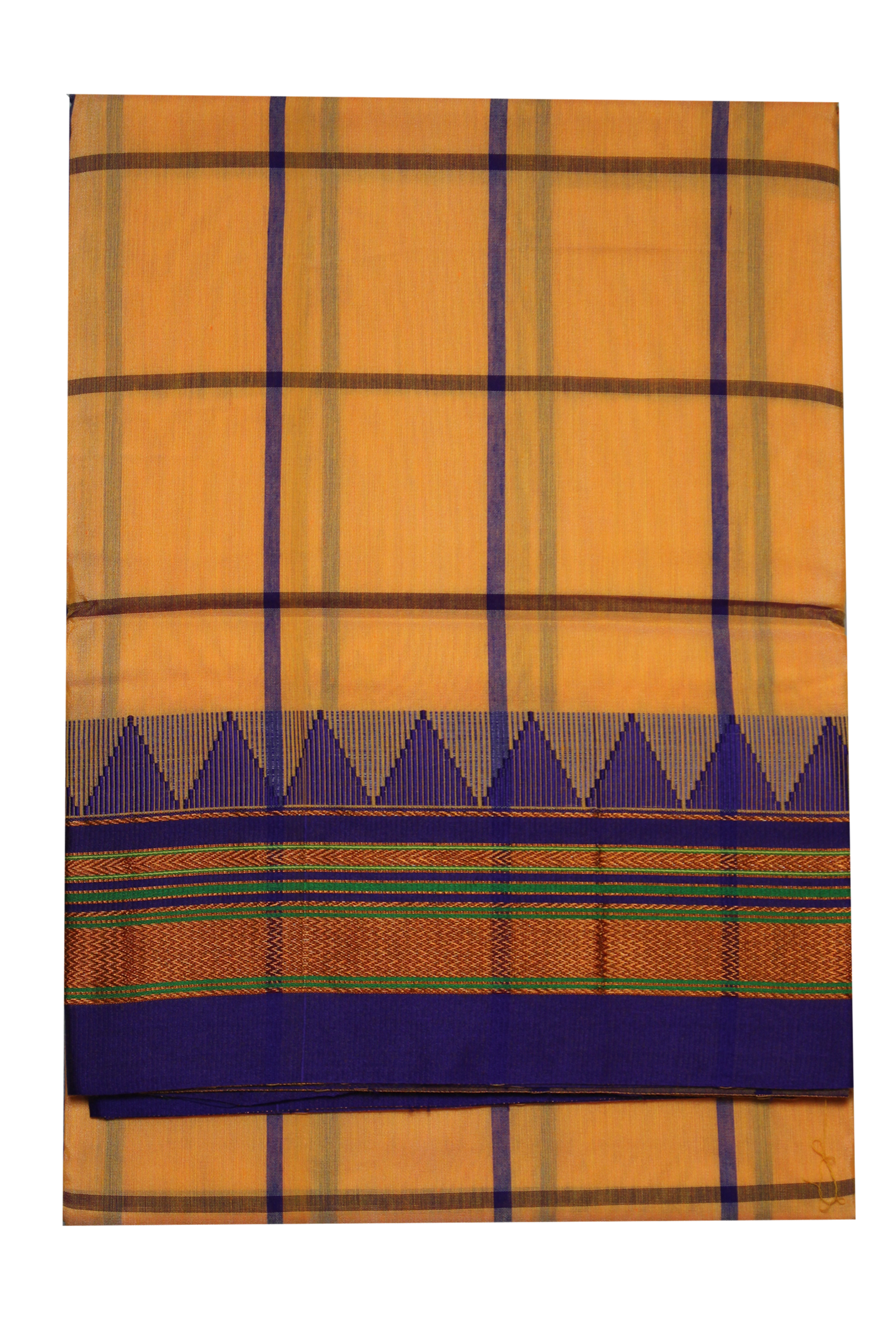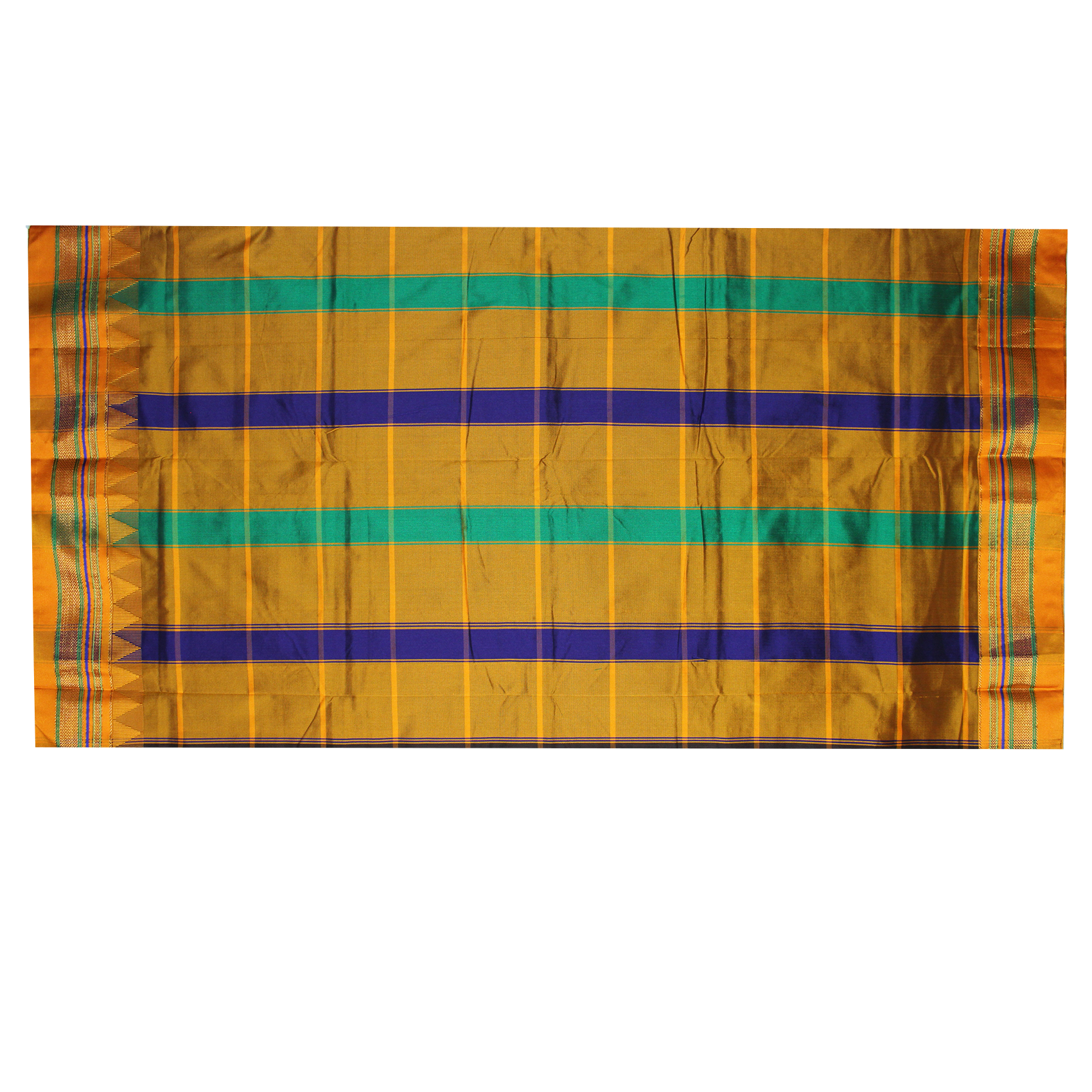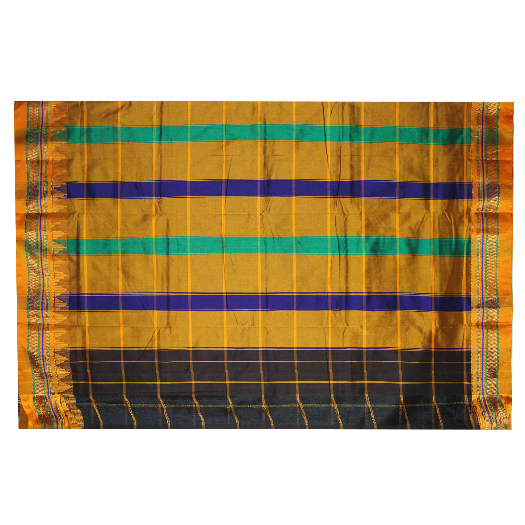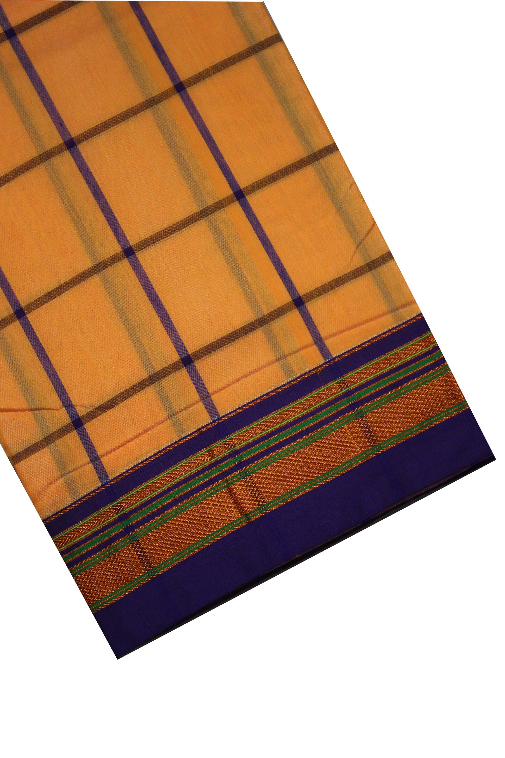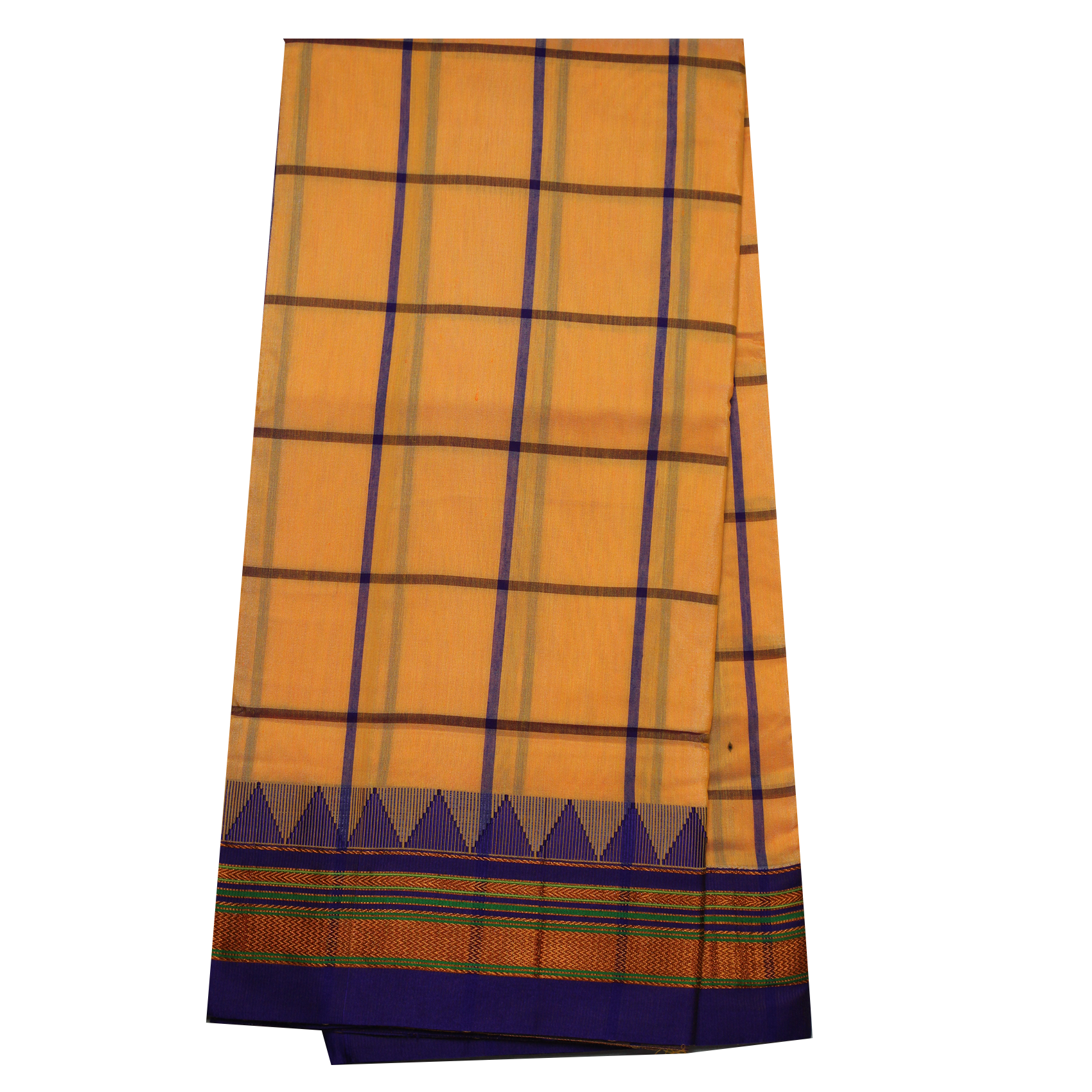 Neyge Ilkal Handwoven Cotton Silk Checkered Patterened Traditional Border Stripe Pallu Saree