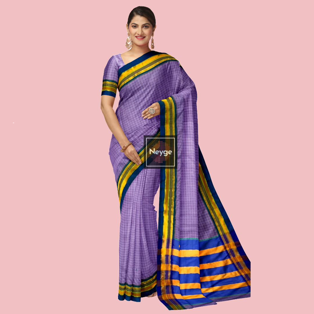 Neyge Ilkal Handwoven Cotton Silk Chikki Patteren Jari Woven Border Stripe Pallu Saree -Lavendar
