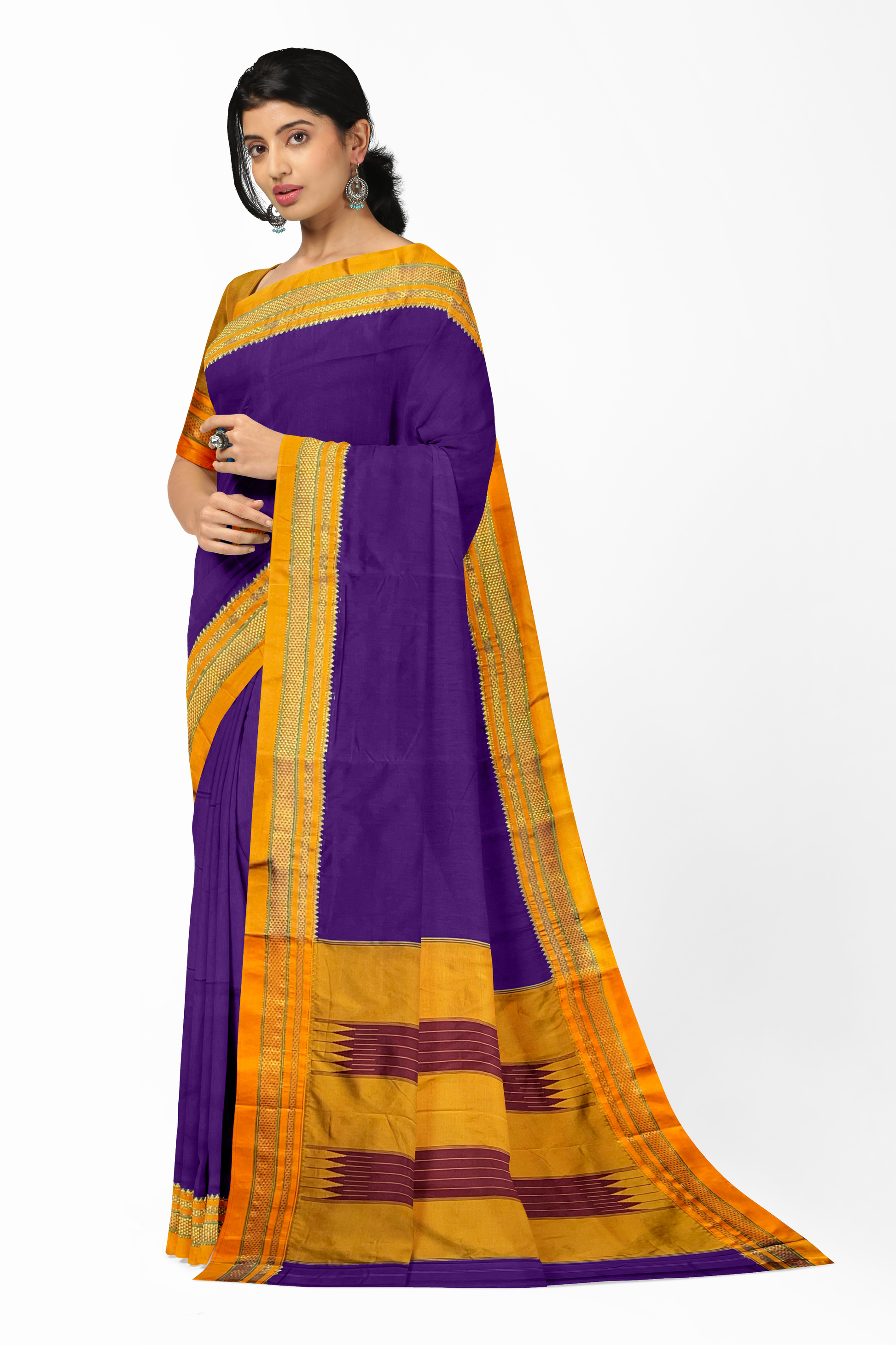 Neyge Ilkal Handwoven Masarai Cotton Silk Plain Body Traditional Chikki paras Border Tope Pallu Saree - Mejenta