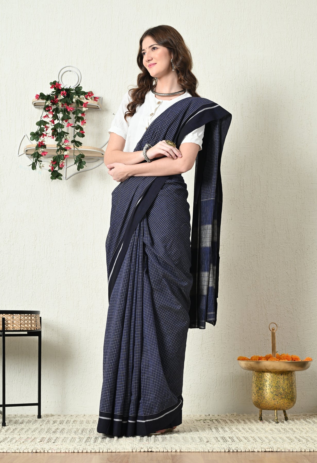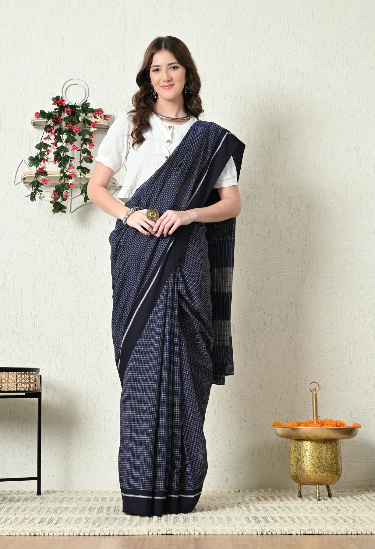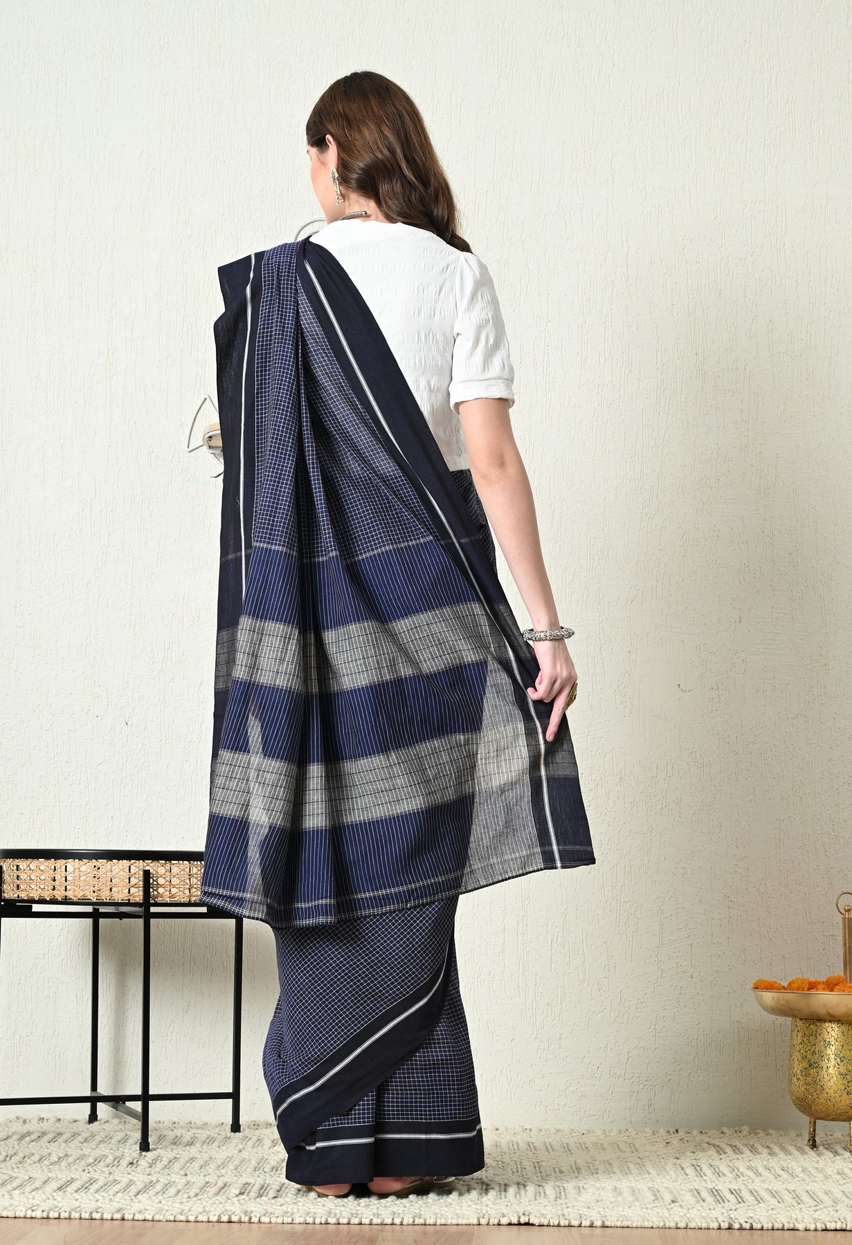 PATTEDA ANCHU weave from the 10th century! We are happy and proud to bring back the traditional sarees that have been worn in southern India since the 10th century. Pure Cotton Handloom - Eco-friendly colours - Reversible, wearable from either side - One saree takes 2 days to weave - Genuine Quality At weddings, this saree is presented to the local deity before being worn by the bride. This beautiful saree has a cotton weave, which can be recognised by its thickness, plain border, and subtle checks all throughout. Amazingly, this saree can be worn from either side, saving you the trouble of ironing and fall & beading. This saree was created with eco-friendly dyes.