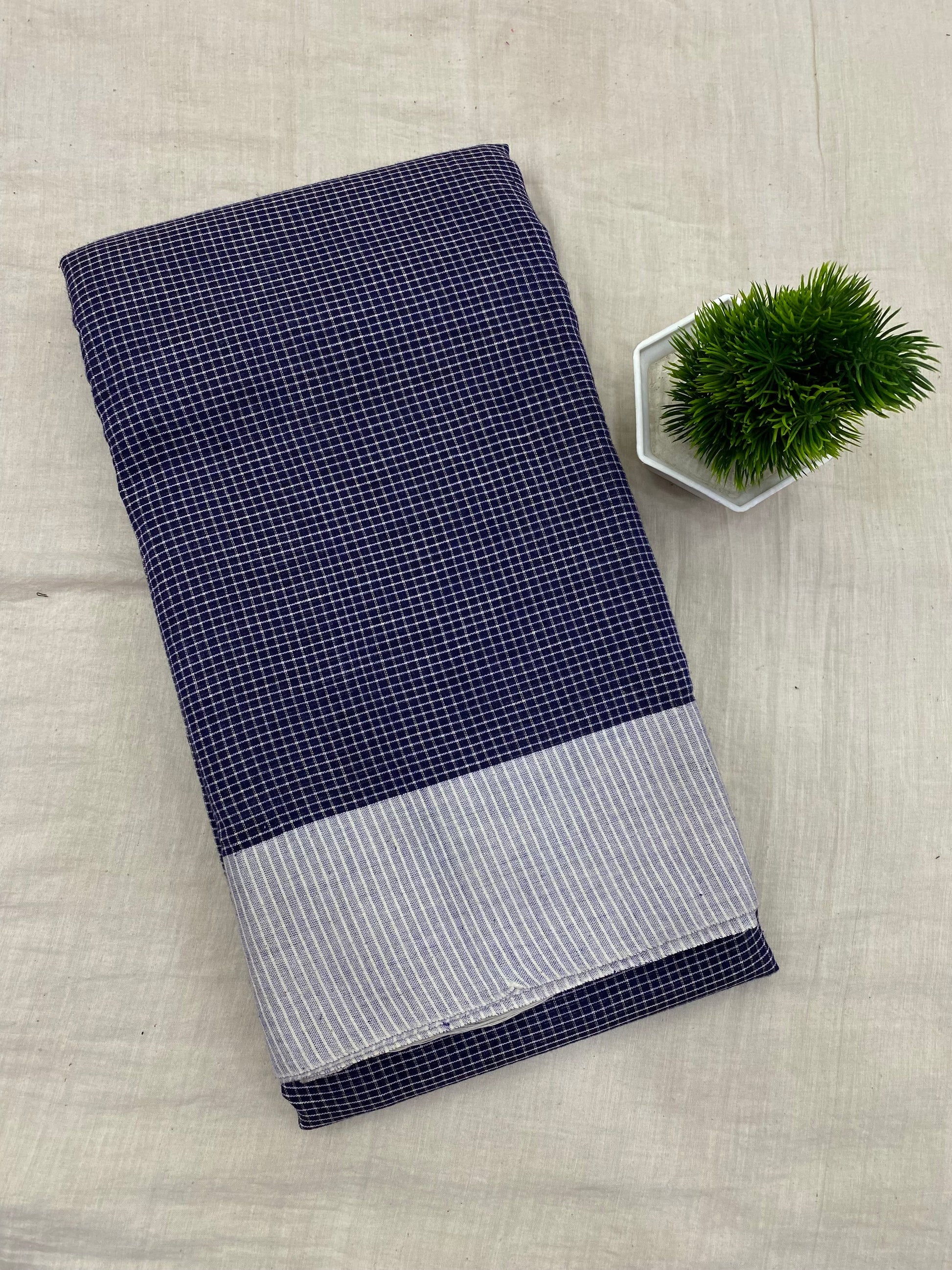 Neyge Ilkal Patteda Anchu Pure Cotton Elegant Checkered Pattern Plain Border Stripe Pallu - Blue