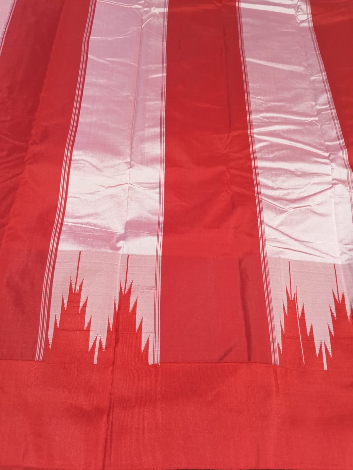 The graceful drape of this saree is complemented by traditional weaves known for its intricate and detailed usually done in vibrant colors. This Ilkal Pure Cotton silk saree has a Temple border. The fabric is woven with Pure cotton and Tana silk saree looks cotton silky and feels like a silk saree. Whether it's summer or winter, they feel soft and nice against the skin.