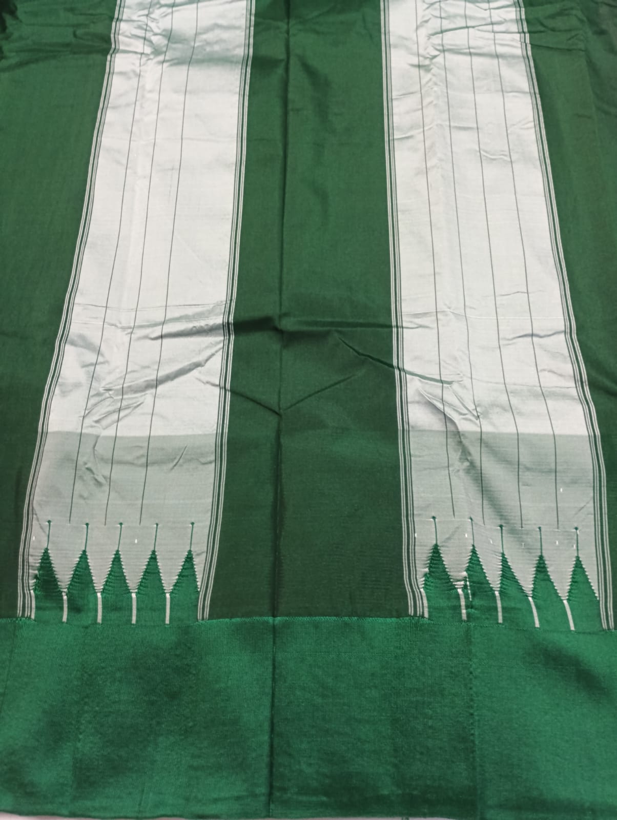 The graceful drape of this saree is complemented by traditional weaves known for its intricate and detailed usually done in vibrant colors. This Ilkal Pure Cotton silk saree has a Temple border. The fabric is woven with Pure cotton and Tana silk saree looks cotton silky and feels like a silk saree. Whether it's summer or winter, they feel soft and nice against the skin.
