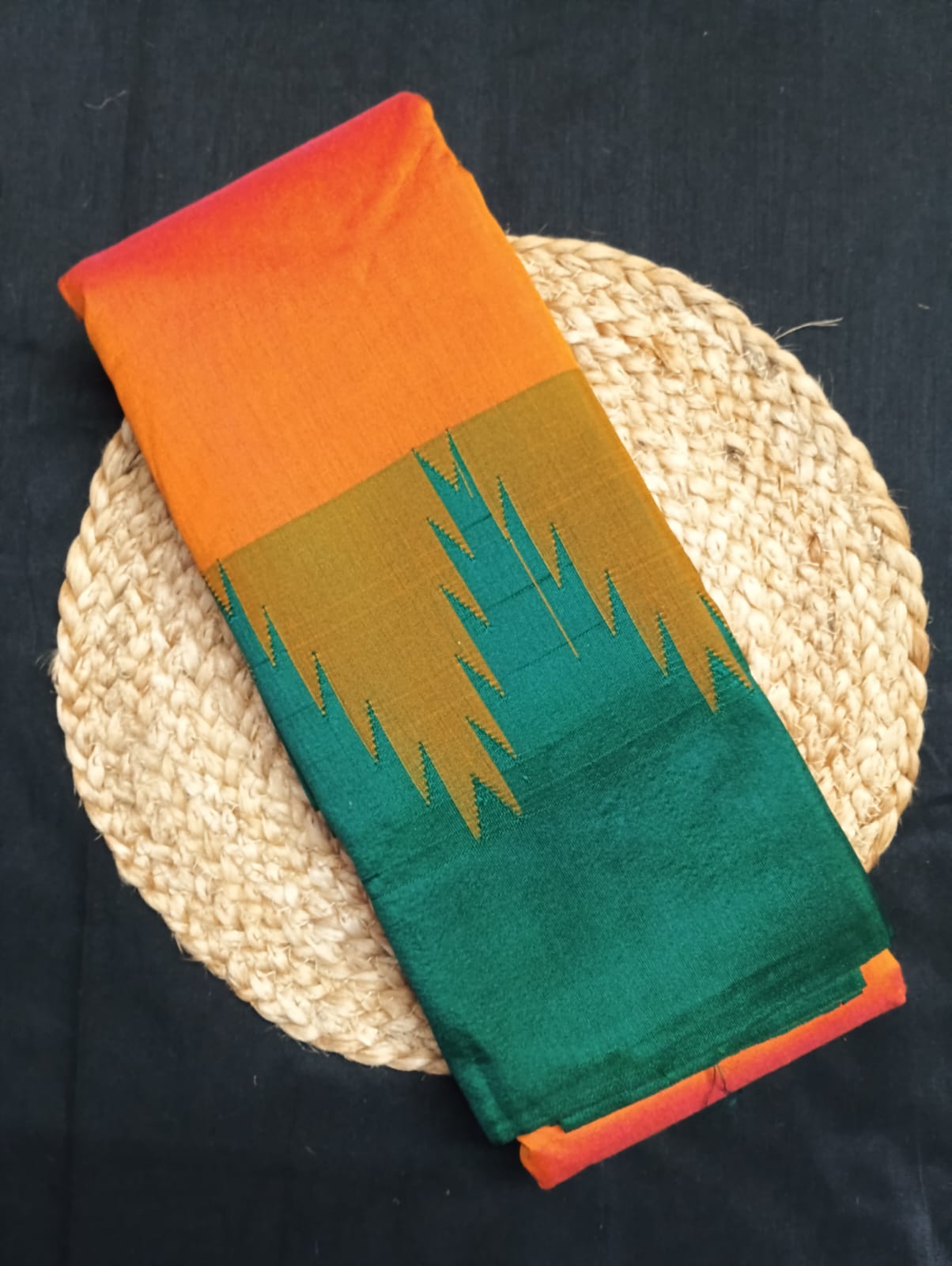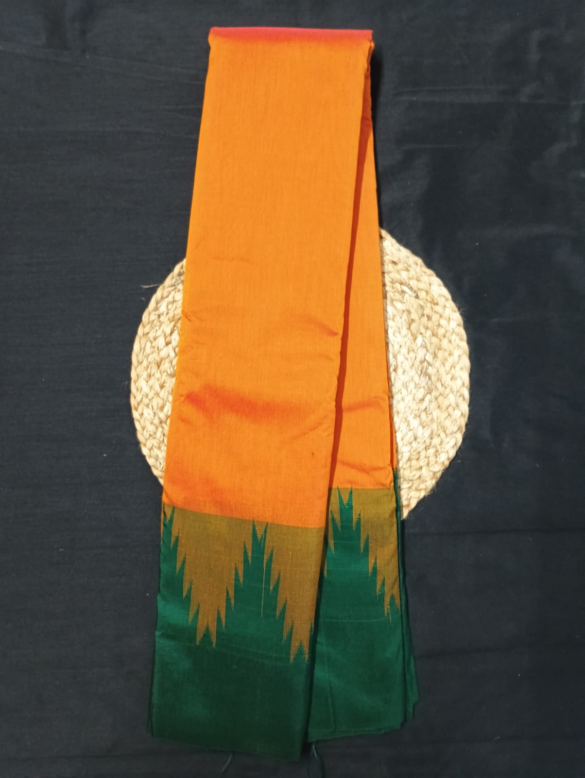 Neyge Ilkal Pure Cotton Silk Saree Big Temple Gadwal Border Traditional Pallu Saree (Orange_Green)