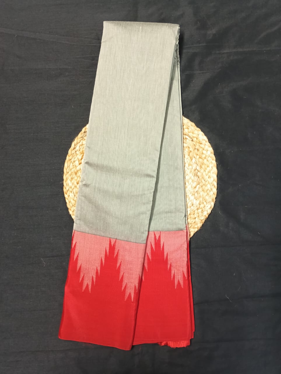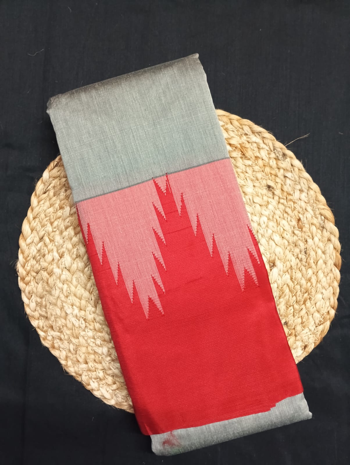 Neyge Ilkal Pure Cotton Silk Saree Big Temple Gadwal Border Traditional Pallu Saree (Grey_Red)