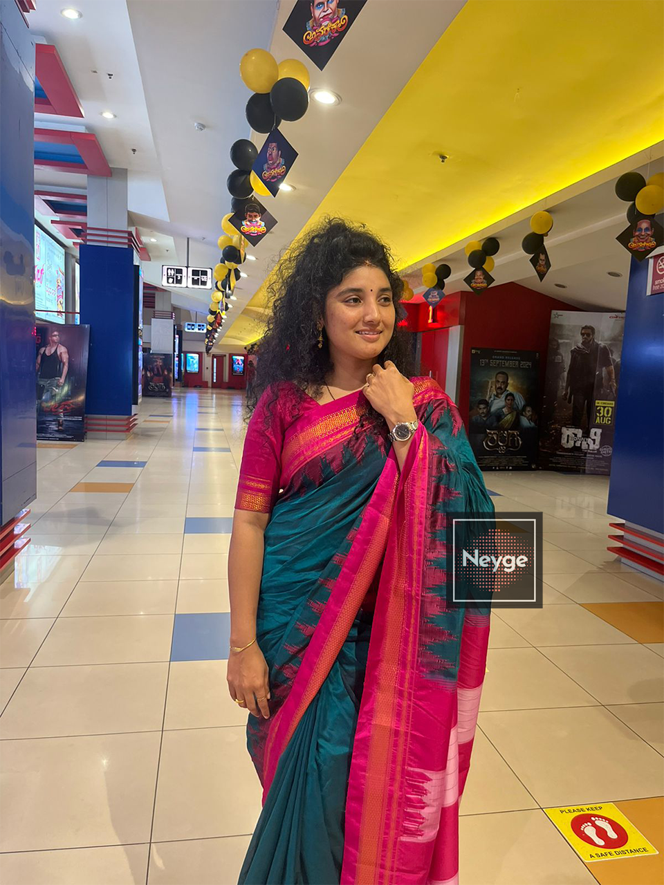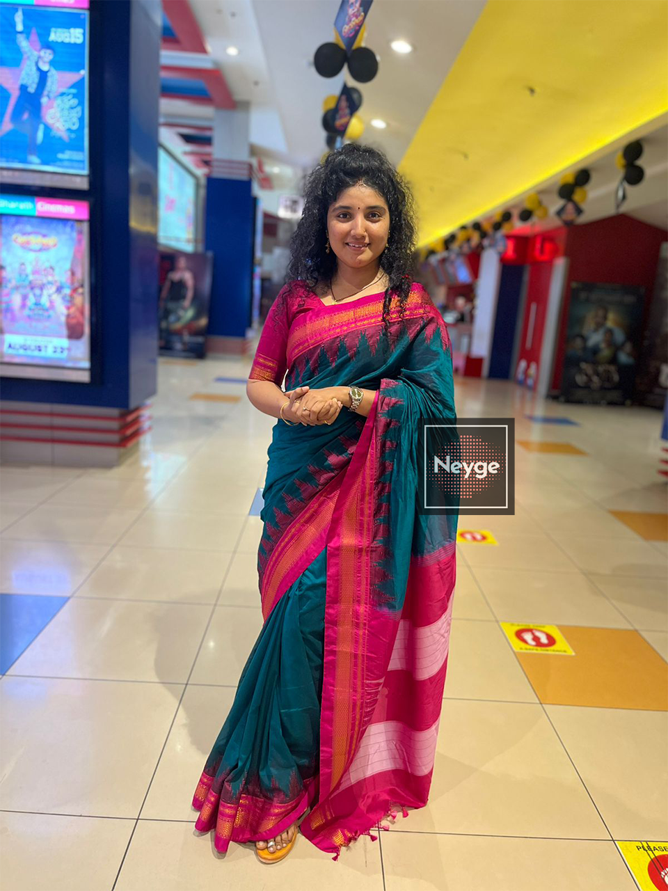 The graceful drape of this saree is complemented by traditional weaves known for its intricate and detailed usually done in vibrant colors. This Ilkal Pure Cotton silk saree has a Temple chikki paras border. The fabric is woven with Pure cotton and Tana silk saree looks cotton silky and feels like a silk saree. Whether it's summer or winter, they feel soft and nice against the skin.