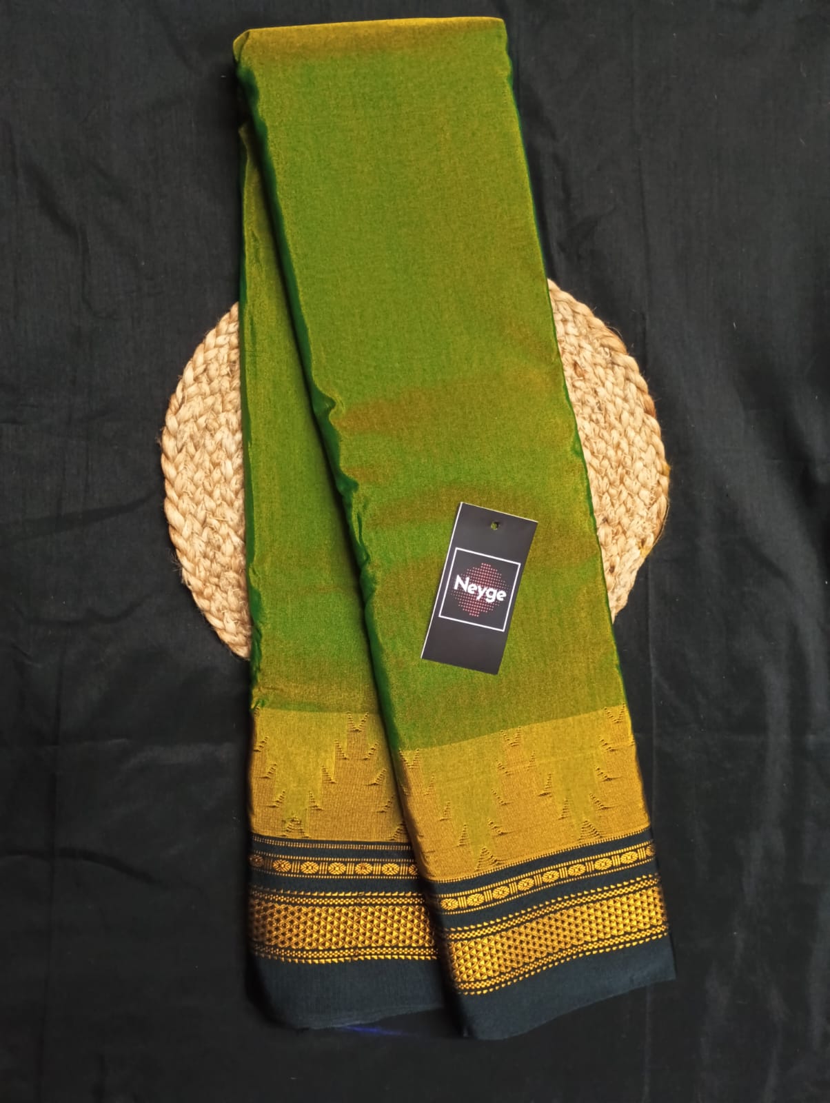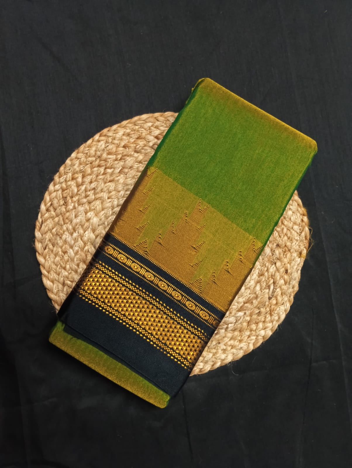 Neyge Ilkal Pure Cotton Silk Saree Temple Gadwal Chikkiparas Border Tope Pallu Saree (Green_Black)