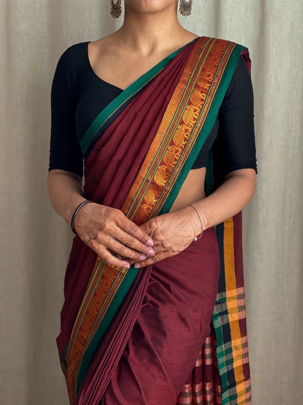•Sari Length: 6.02-6.2 Mts (Draping length: 5.6 mtrs, Blouse Length - 0.8mtrs)