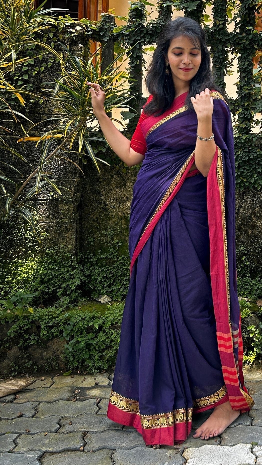 Flaunt your style in this beautiful Narayanpet Pure Cotton saree with cotton thread work Elephant Motif Border design which gives it a simple traditional look. These sarees usually have a plain or solid-colored body, and the border and pallu feature intricate designs and patterns. The contrast between the body and the borders/pallu is a hallmark of Narayanpet sarees. Saree is woven with running blouse. Cotton thread work in the borders adds a touch of simple elegant look and suits for occasion like Festive, Wedding and Get Together.